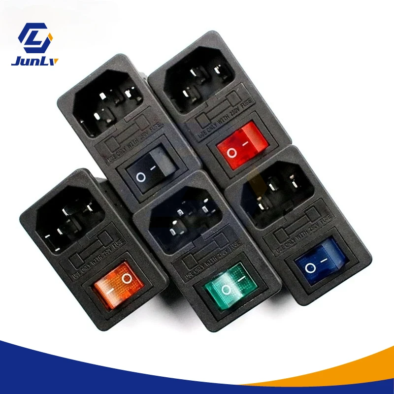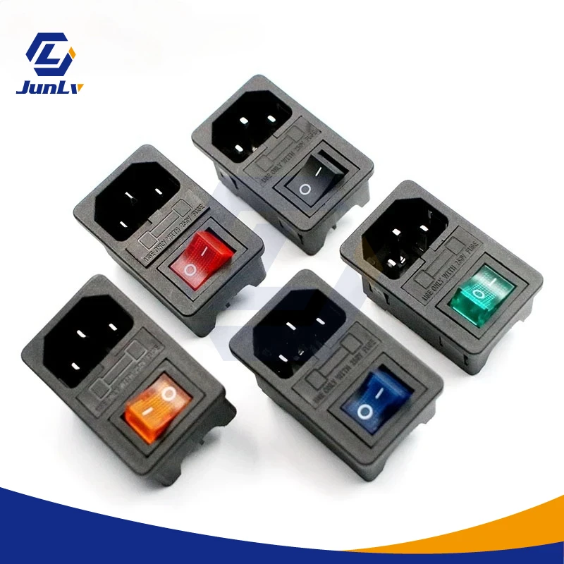 С предохранителем 10А! Красный тумблер, IEC320 C14, розетка разъем, красный зеленый синий черный AC-01 розетка переменного тока три в одном