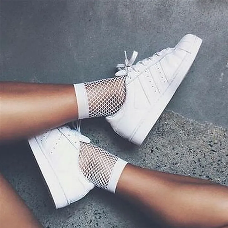Детские ажурные носки для женщин и мужчин, белые ажурные носки длиной по щиколотку дамские сетчатые кружевные колготки для рыбной ловли для рыбы короткие носки модный спортивный стиль на каждый день