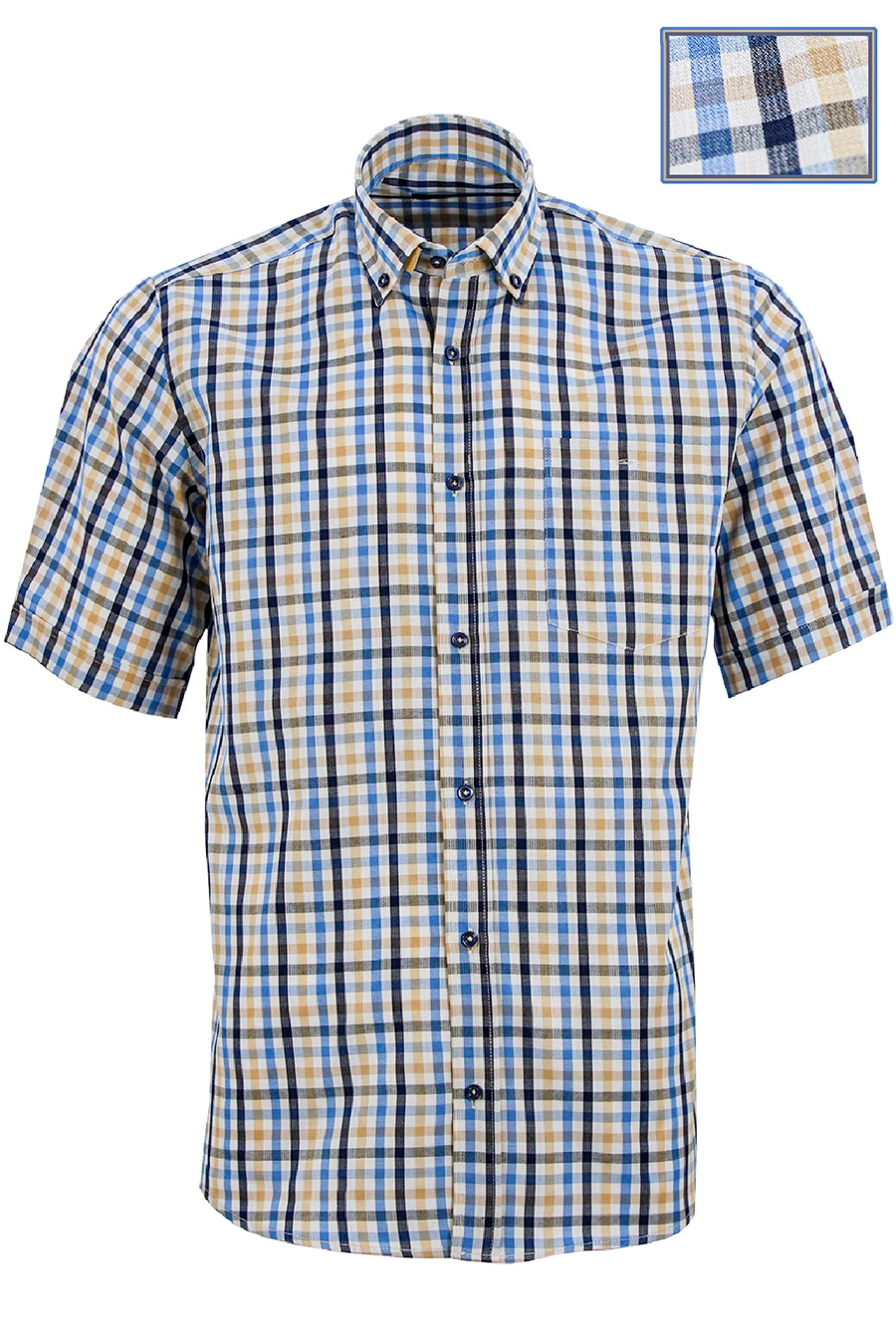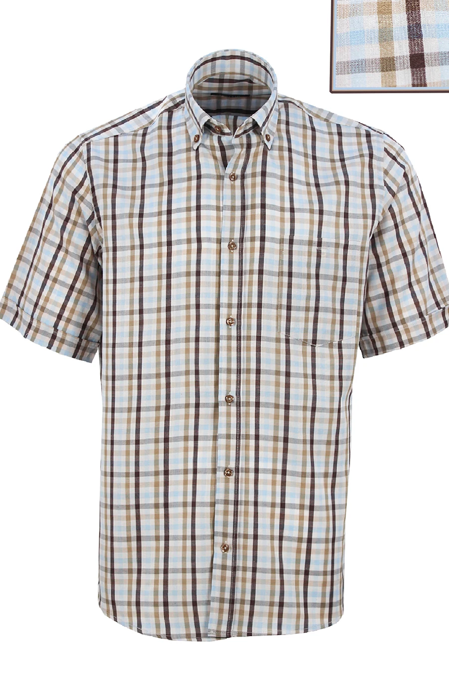 Рубашка мужская хлопковая, в клетку, с коротким рукавом, повседневн...