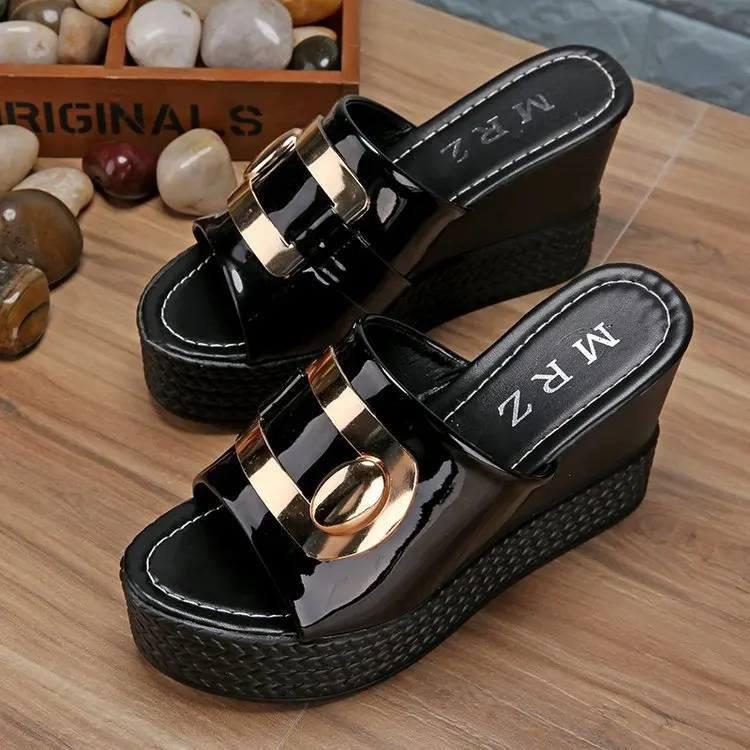 Сланцы женские с открытым носком, однотонные сандалии на танкетке, на толстой платформе, Нескользящие, очень высокие, на лето