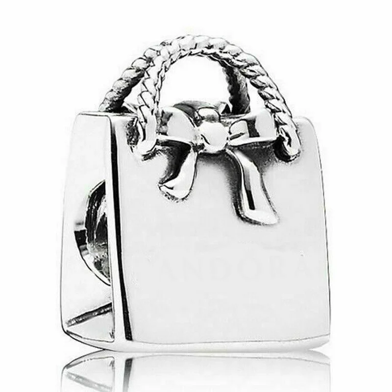 Блестящая сумка для покупок с бантом розовая дорожная сумка бусины чемодан из стерлингового серебра 925 пробы подвеска модный браслет Diy ювелирные изделия
