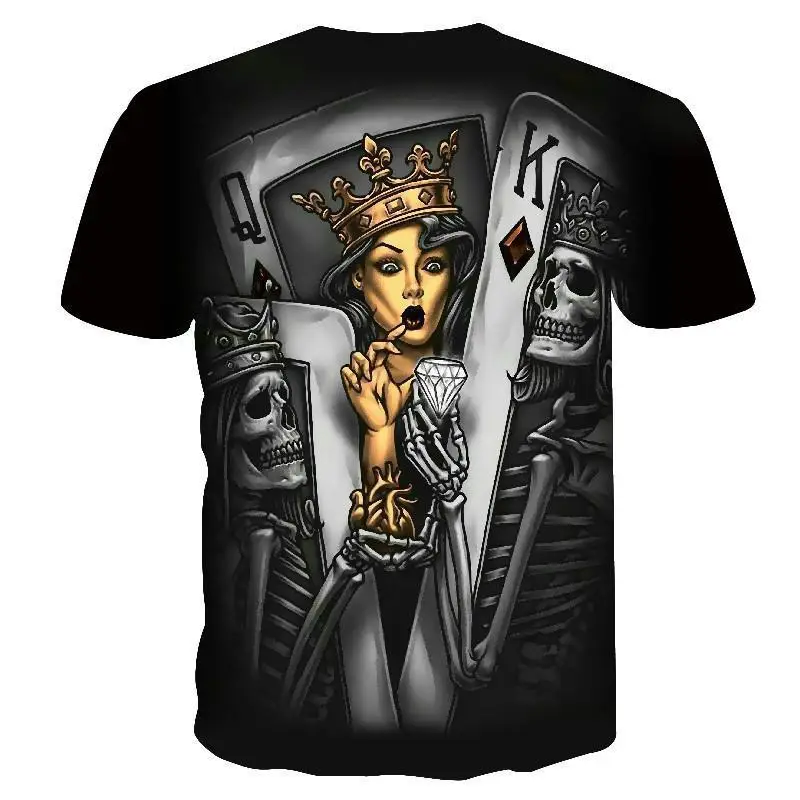 Футболка мужская с 3d принтом черепа и покера, Повседневная тенниска с коротким рукавом, черный дизайнерский Топ, Прямая поставка, на лето