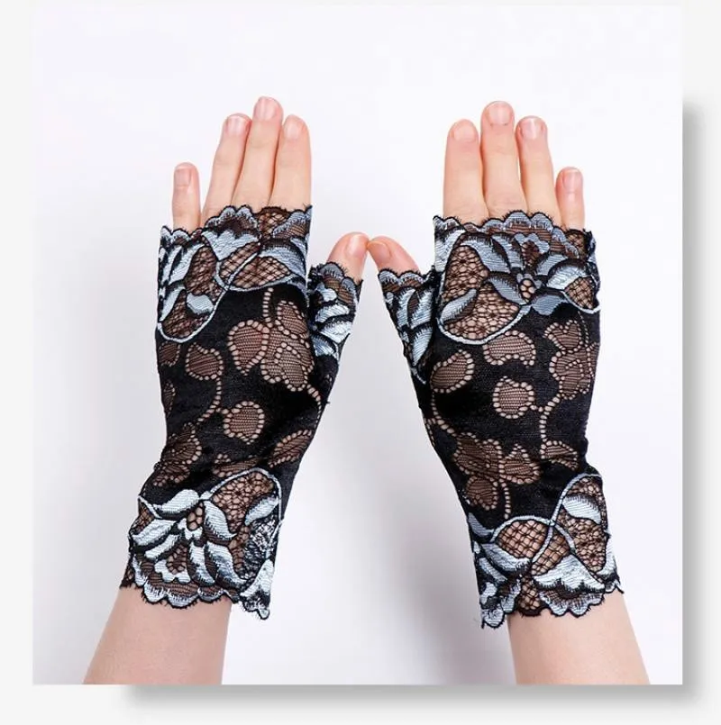 Перчатки женские кружевные, тонкие дышащие митенки без пальцев, для вождения, A441