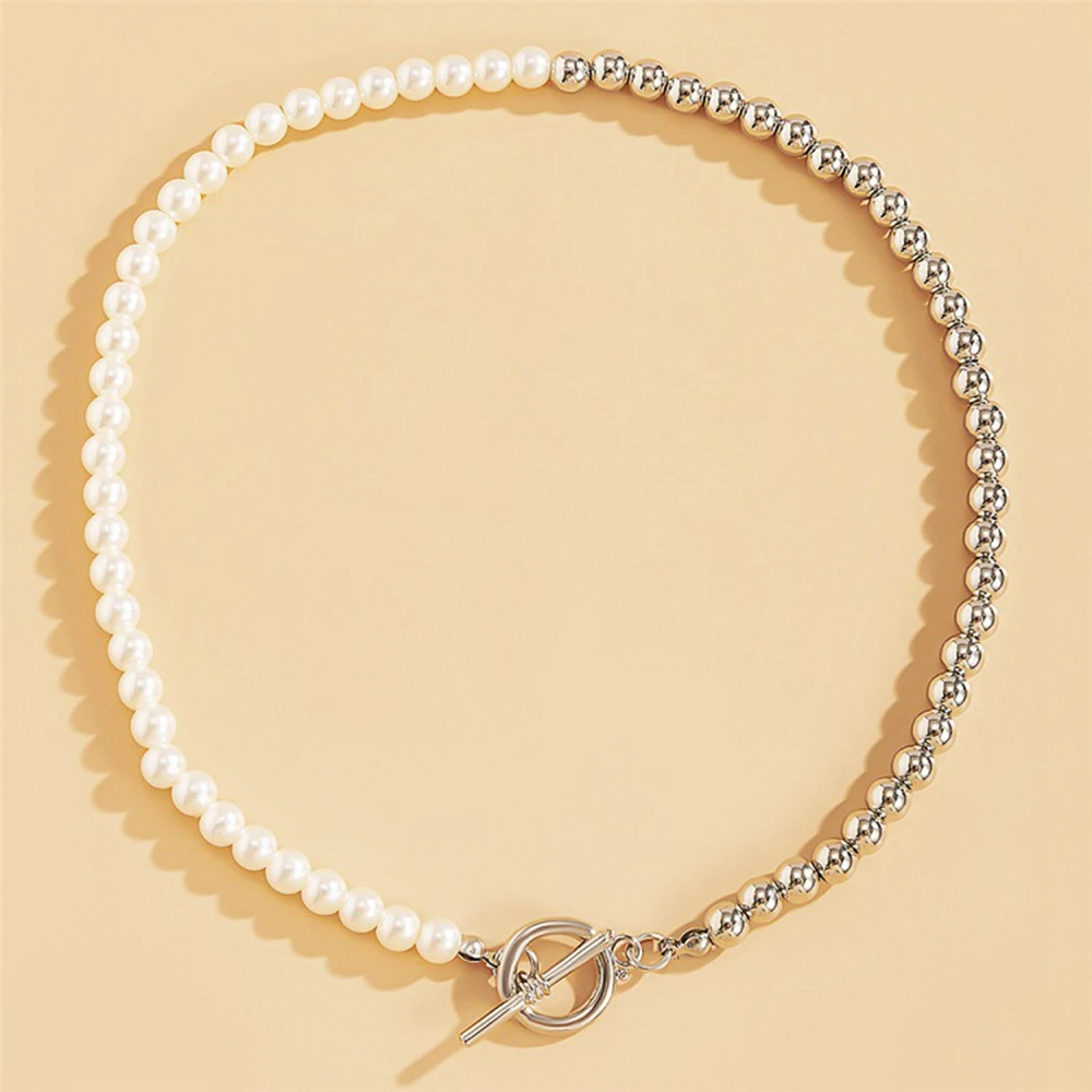 Асимметричная сшивание Перл Цепочки и ожерелья OT с декоративной металлической пряжкой и Бусы Ретро Простой цепочки на ключицы