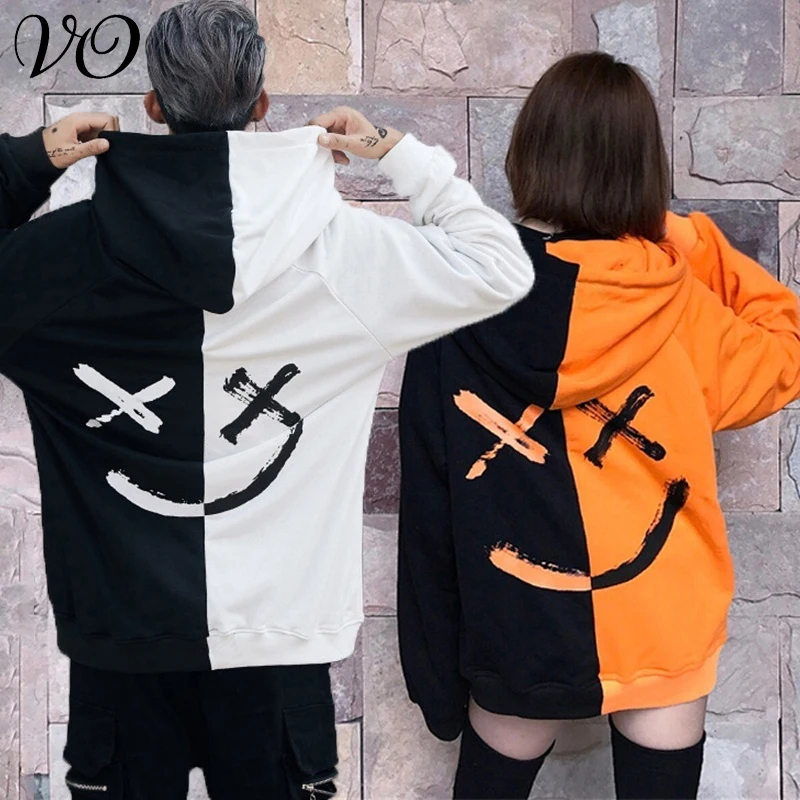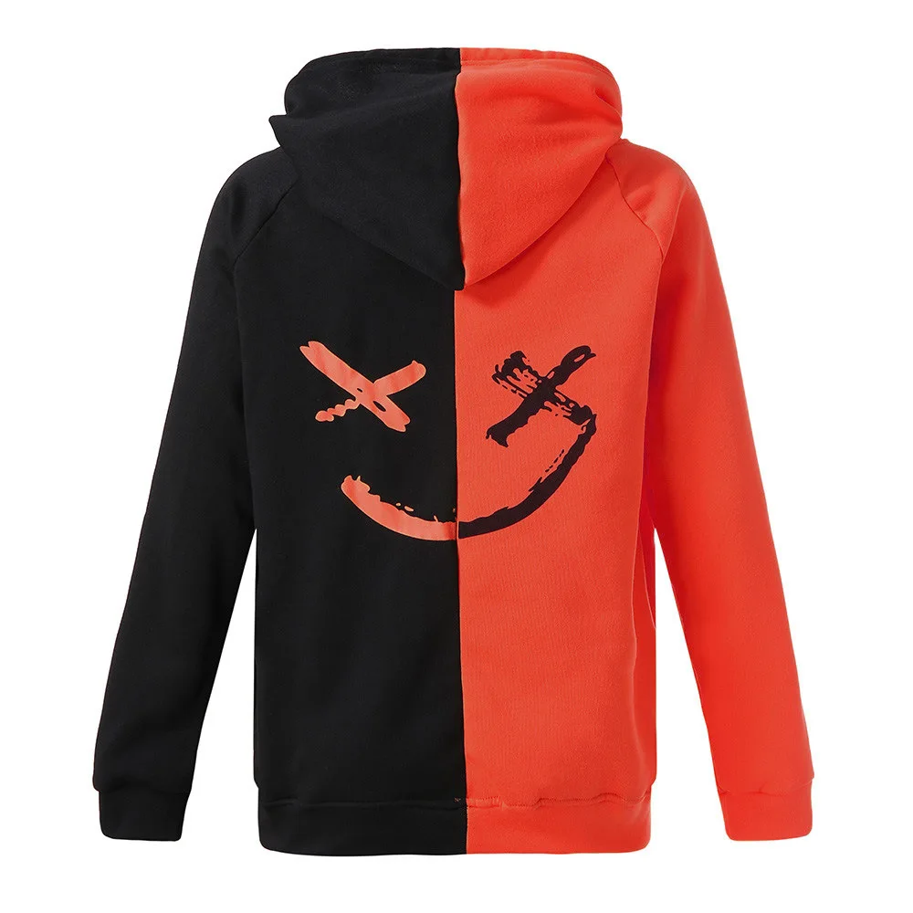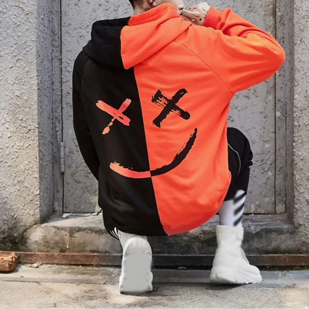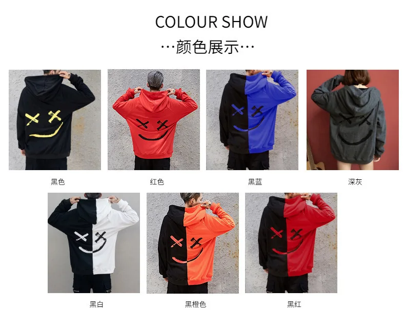 Новинка, летняя брендовая Толстовка с принтом смайлика Шаринган, Двухцветный пуловер с капюшоном, Свитшот в стиле Харадзюку, легкая одежда в стиле хип-хоп
