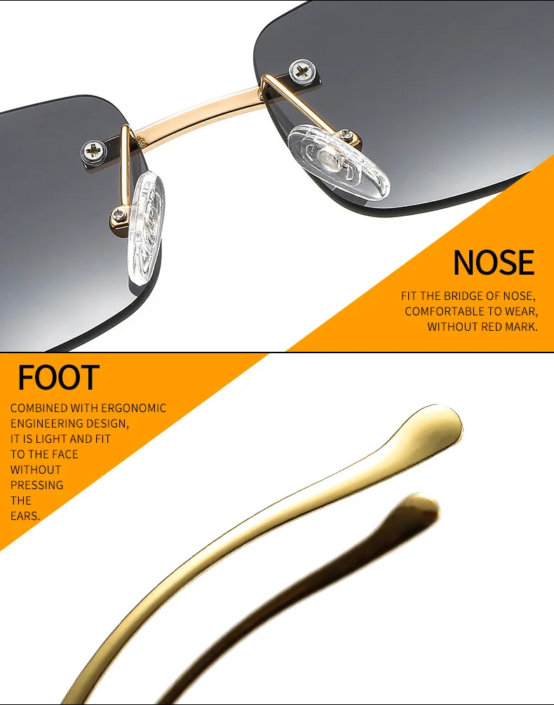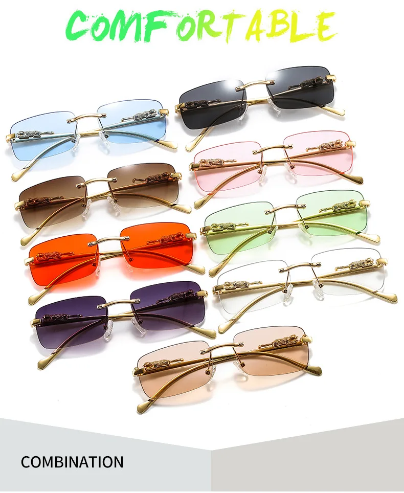 Очки солнцезащитные женские квадратные, брендовые Дизайнерские Модные прямоугольные солнечные очки без оправы в стиле ретро, без оправы, UV400