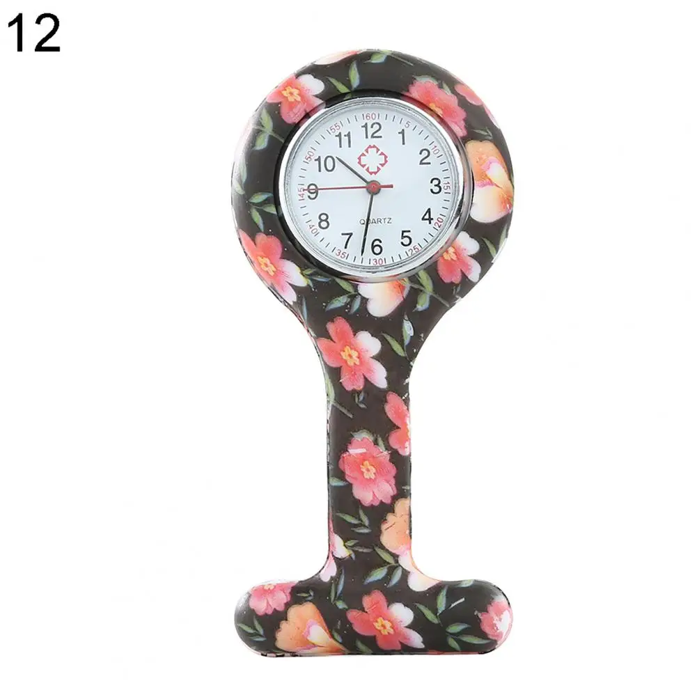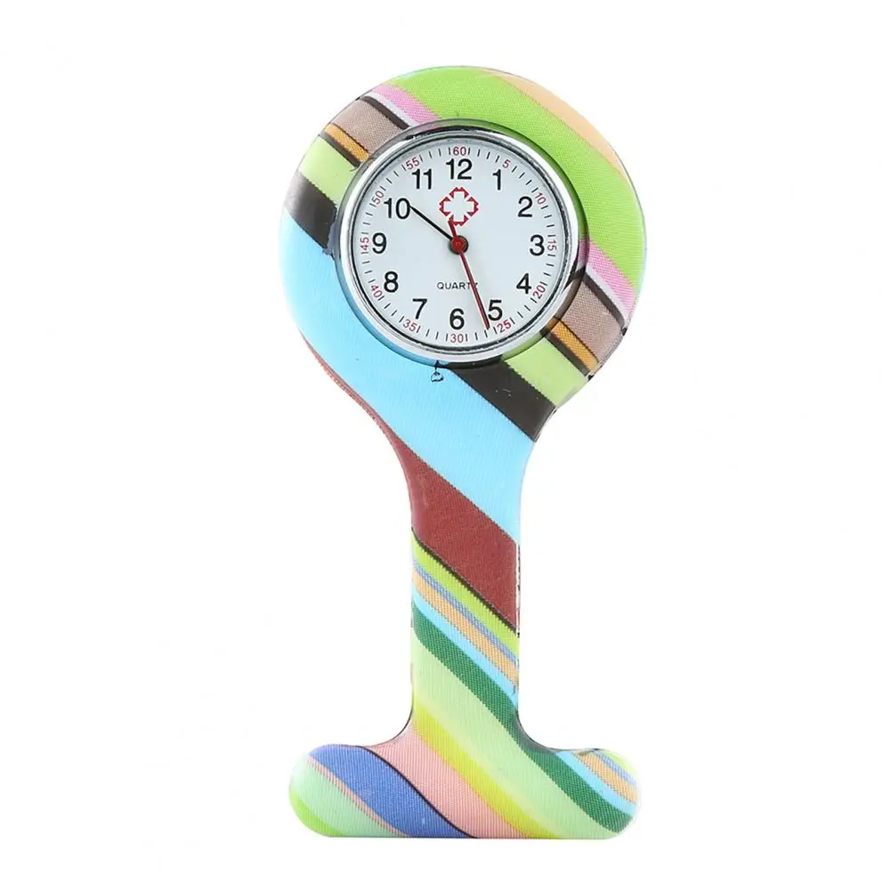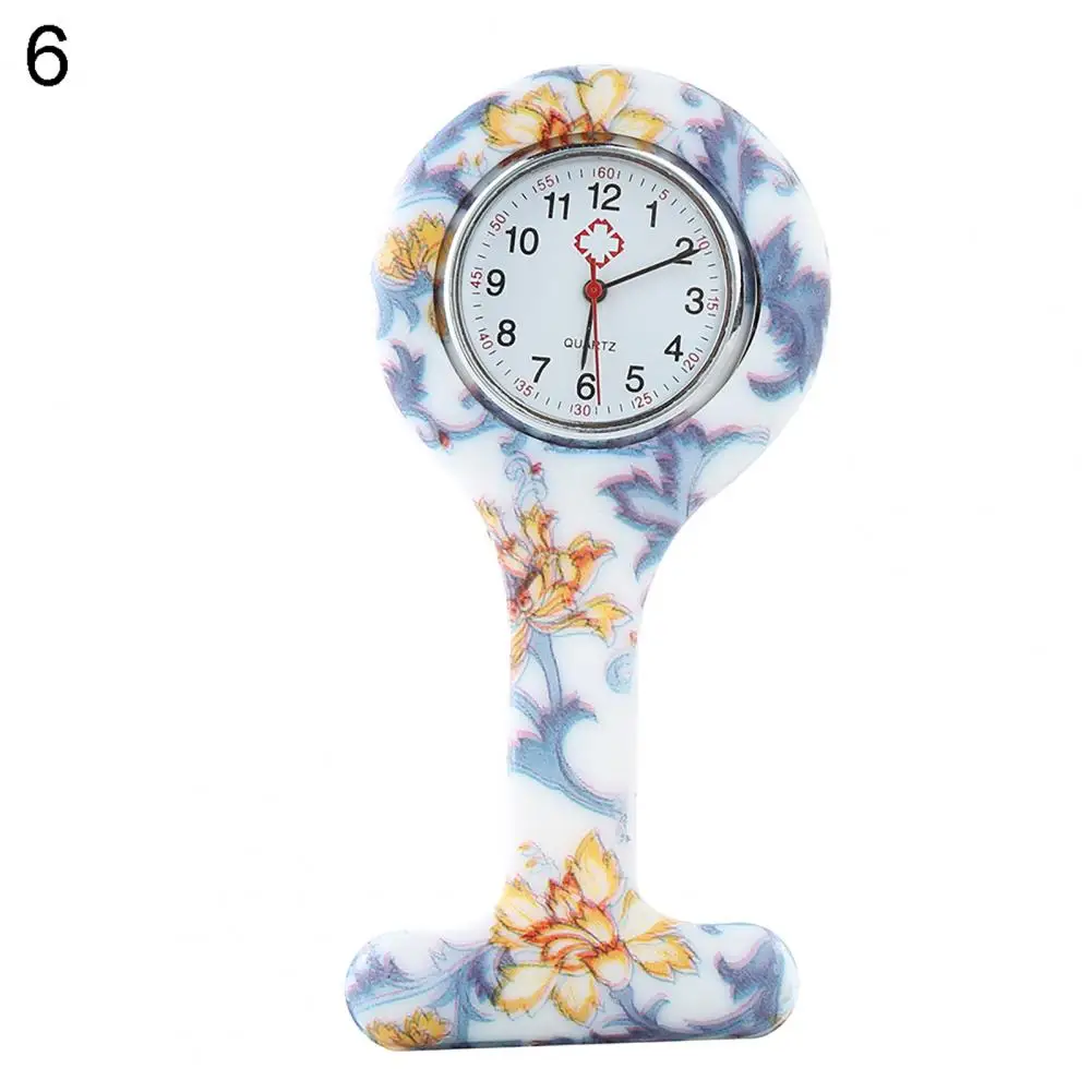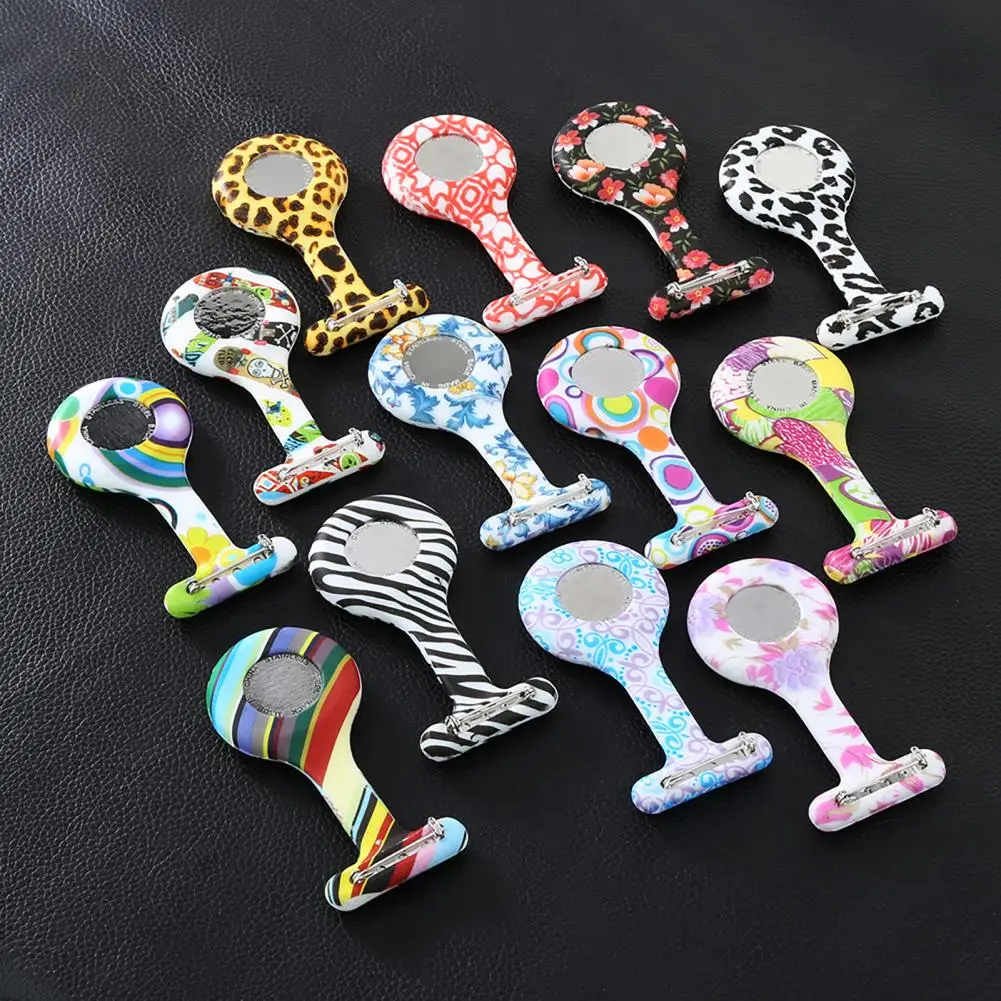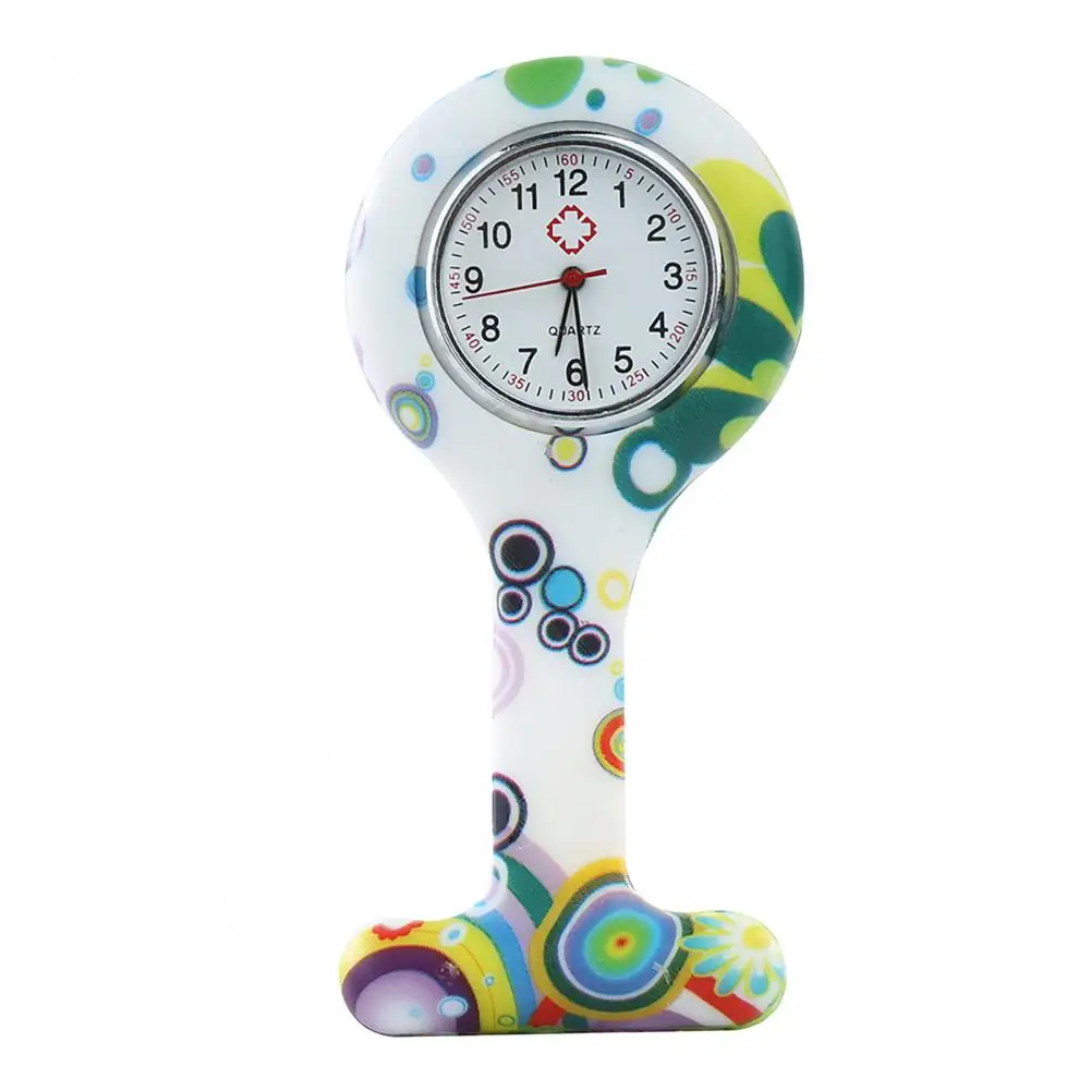 Повседневные силиконовые часы для медсестер с разноцветным узором, арабскими цифрами, круглым циферблатом, силиконовая брошь для медсестер, часы-брелок, карманные часы