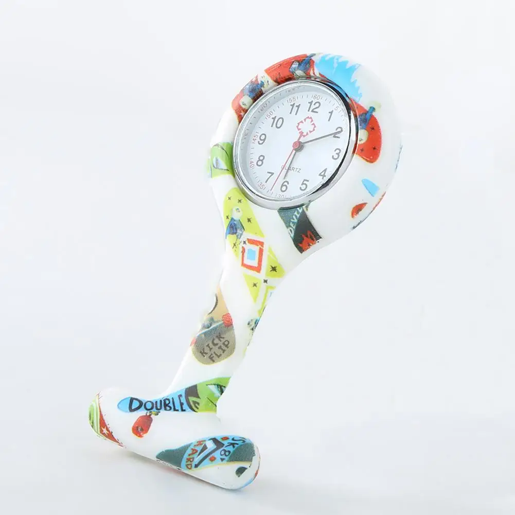 Повседневные силиконовые часы медсестры многоцветный узор арабские цифры круглый циферблат женские Медсестры Брошь Туника Брелок часы карманные часы