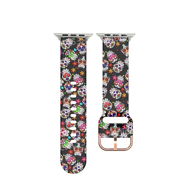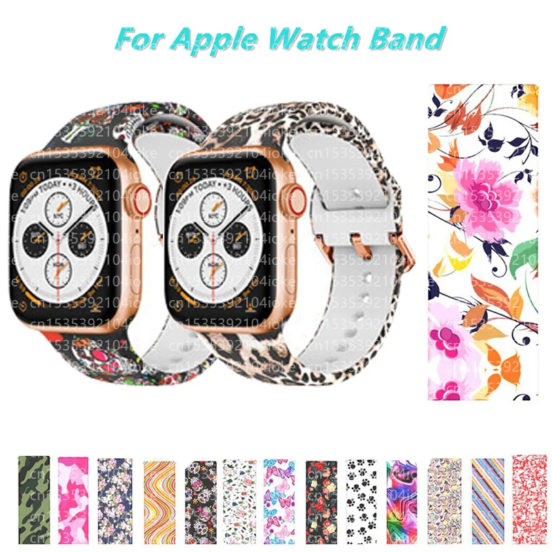 Силиконовый ремешок с принтом для Apple Watch Band 44 мм 40 мм 38 м...