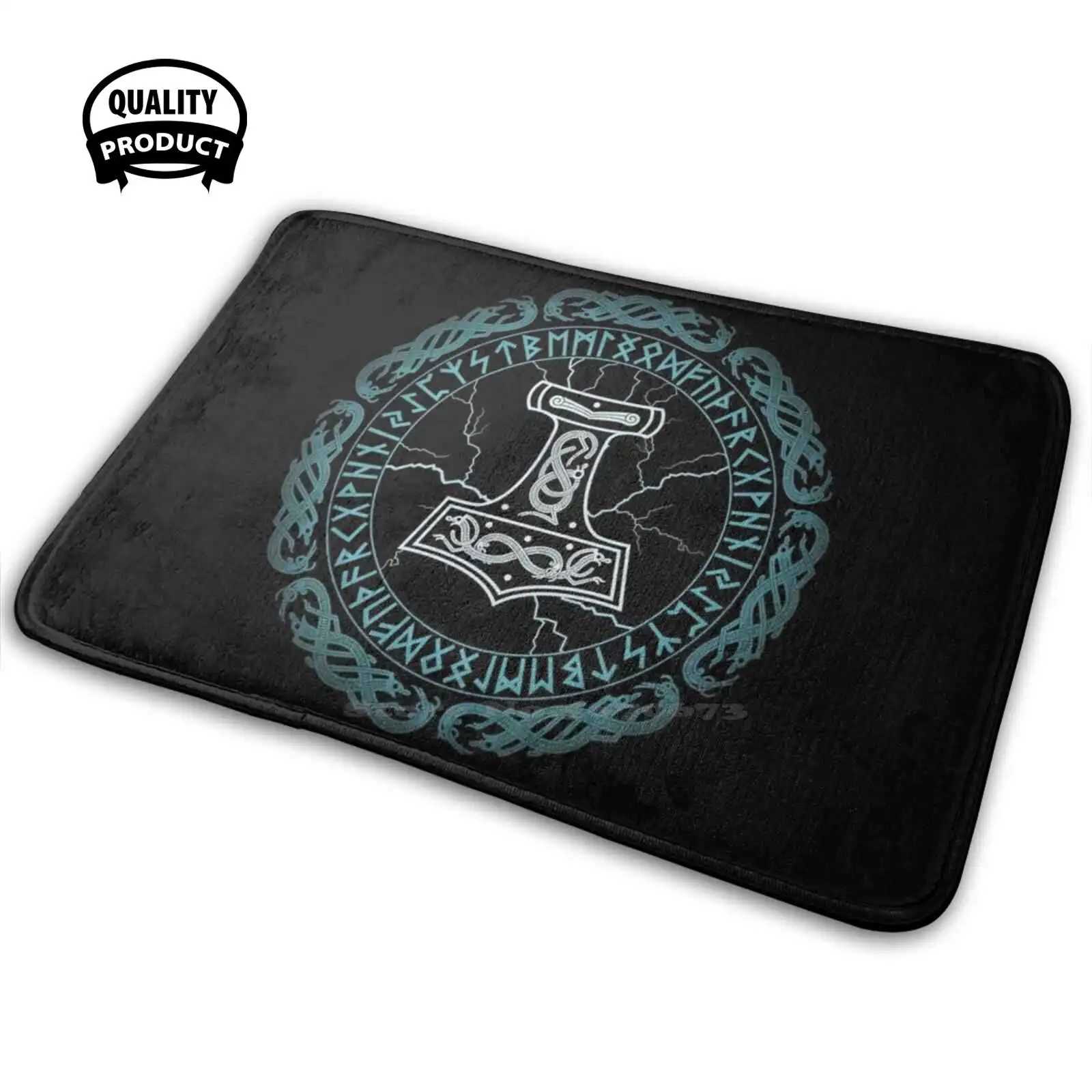 Удобный дверной коврик с молотом Рун, коврик для двери, коврик, подушка для ковра, mj, lnir, Mjolnir, молоток Одина, Викинг норвежский Asgard God Thors