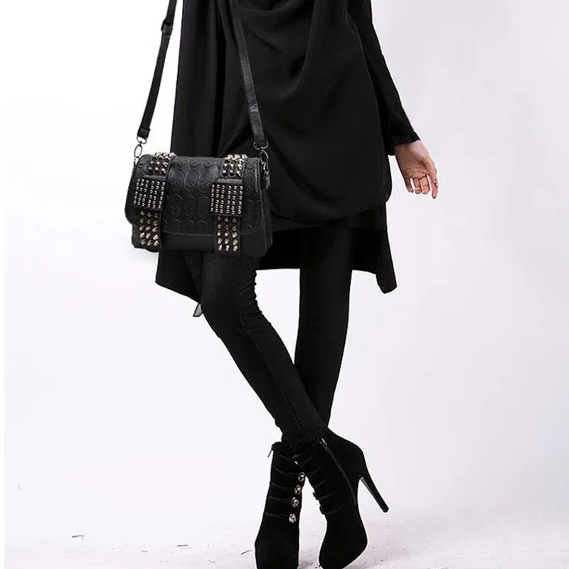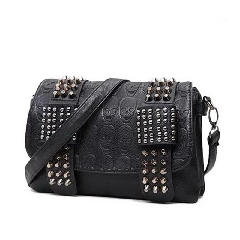 2022 летняя Черная Женская сумка с заклепками, женские сумки через плечо из искусственной кожи с черепом, сумки через плечо в стиле панк для женщин, сумка-мессенджер с цепочкой
