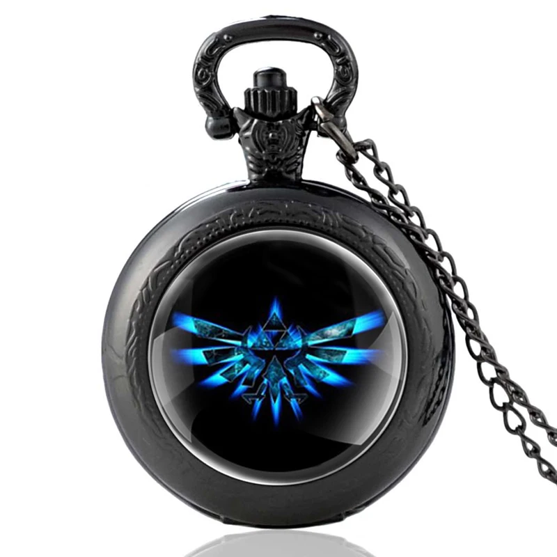 Черные классические стеклянные кварцевые карманные часы с кабошоном...