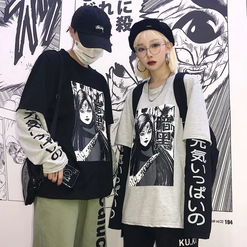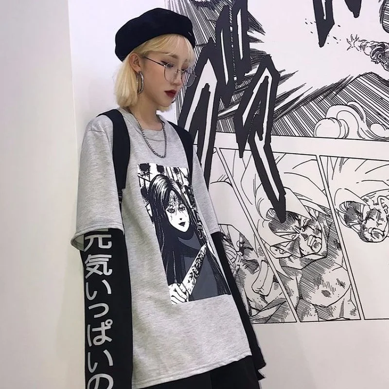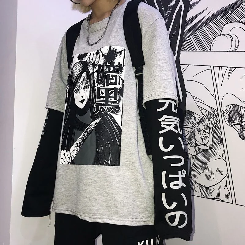Футболка женскаяМужская в готическом стиле, топ в стиле Харадзюку С гранж-феей, темная Эстетическая футболка в стиле панк, размера плюс размер, одежда в стиле эмо