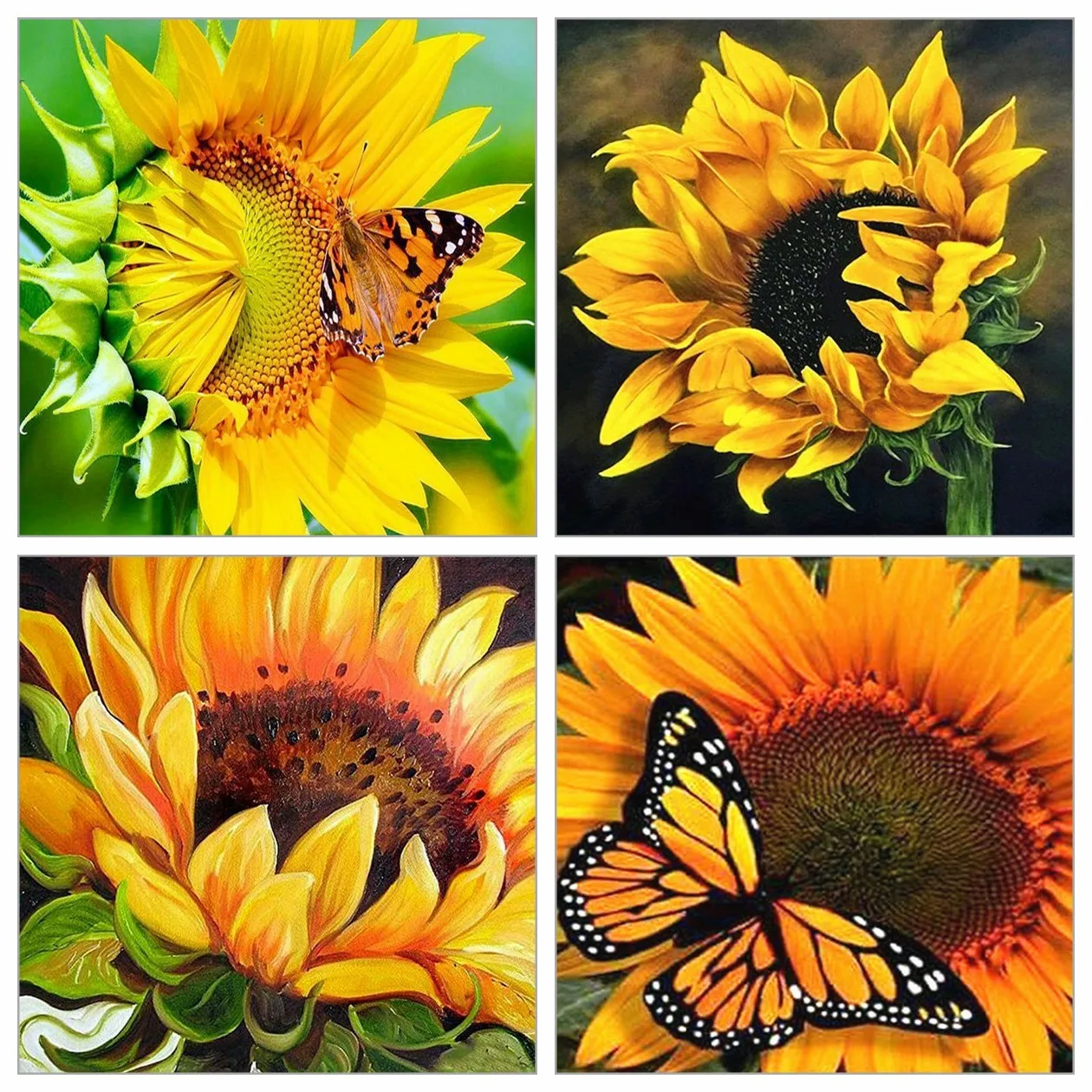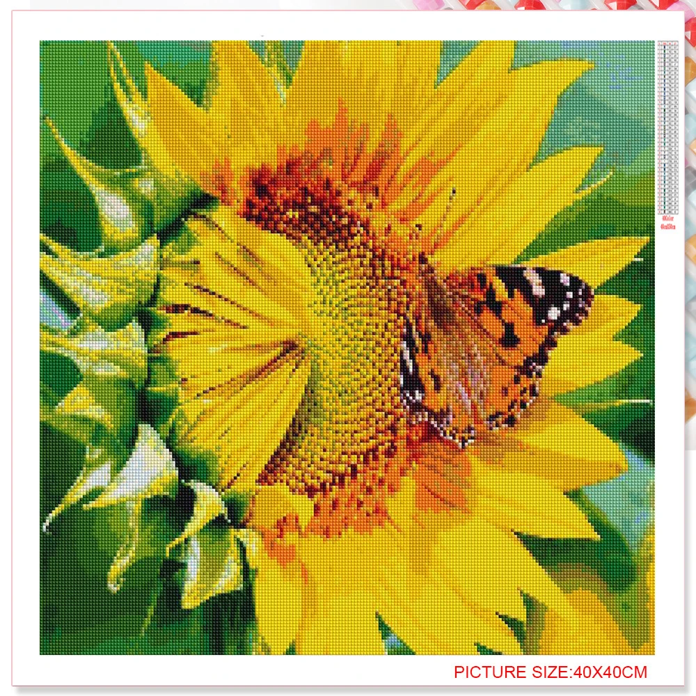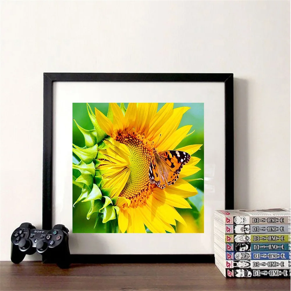 Алмазная живопись цветок 5D DIY искусство полная дрель Подсолнух Бабочка Мозаика набор вышивка Настенная Наклейка Набор декор вышивка крестиком