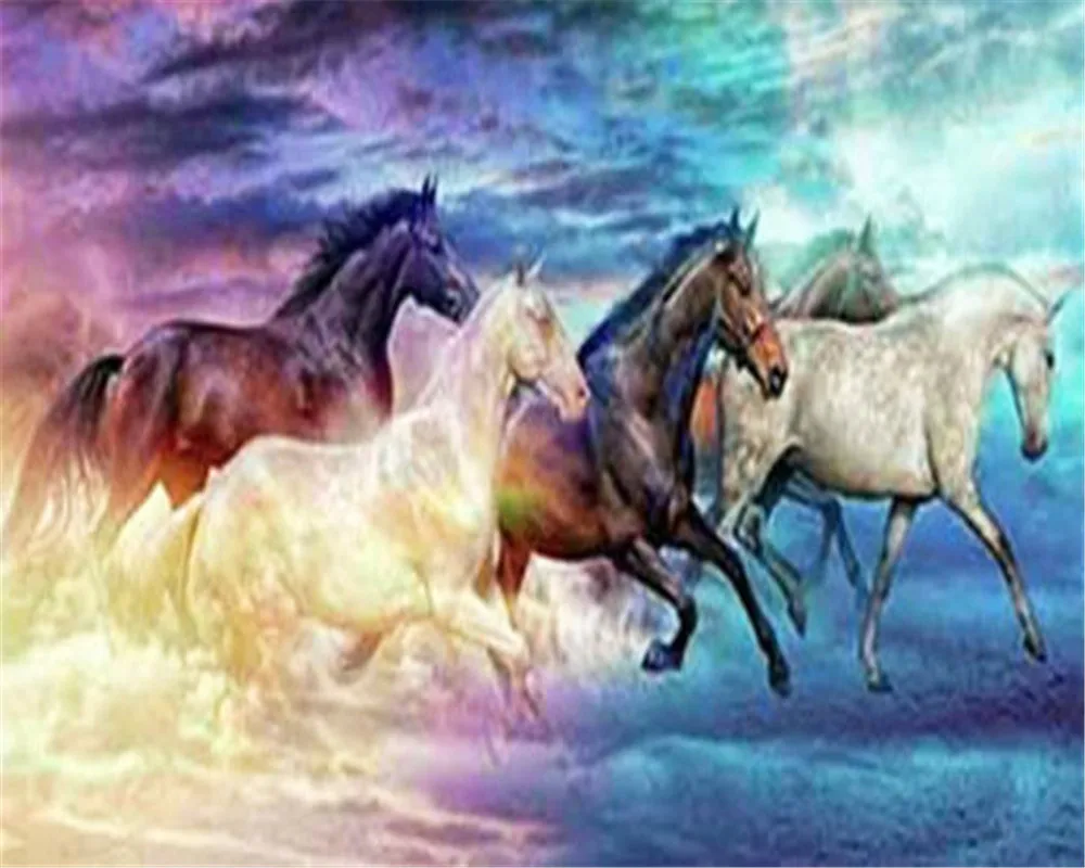 Алмазная вышивка, лошади, картина 5D "закат", мозаичная картина из ...