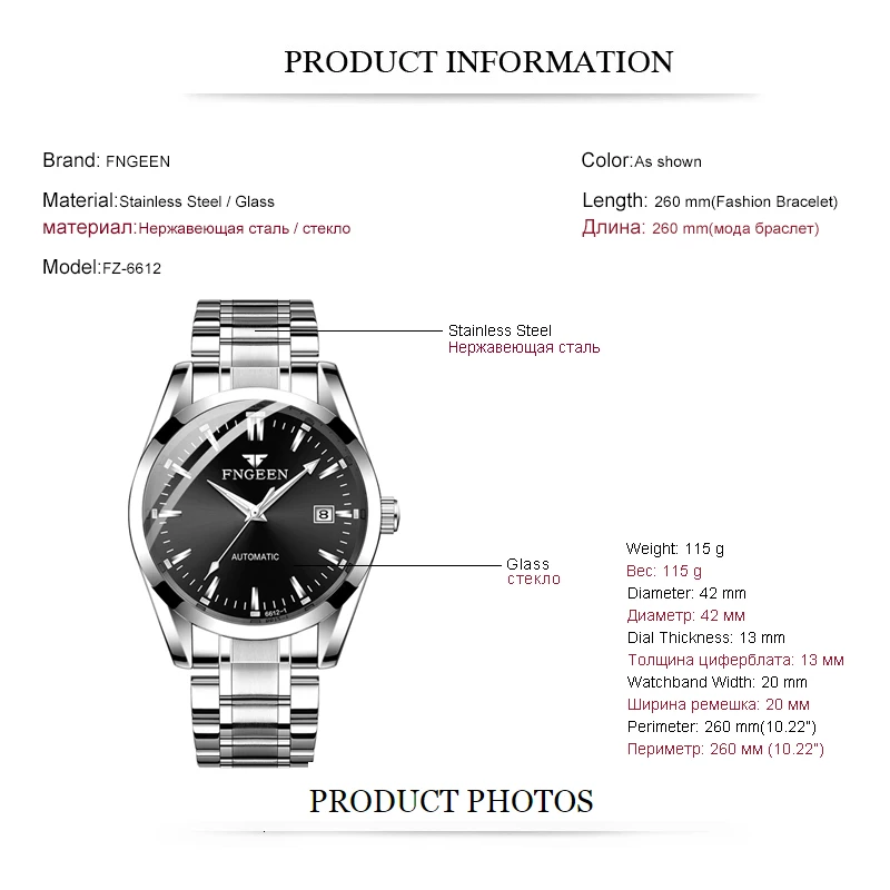 Часы мужские механические водонепроницаемые из нержавеющей стали, 2022