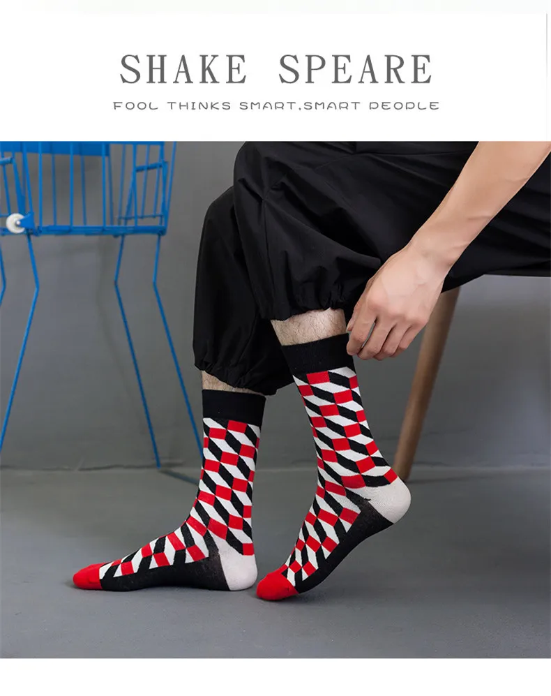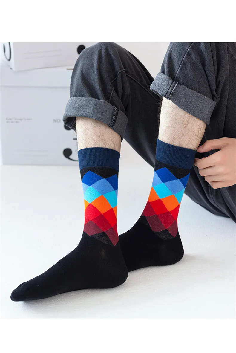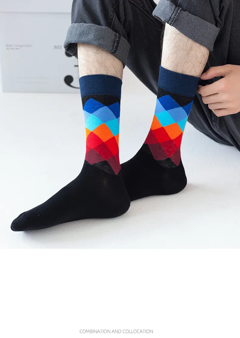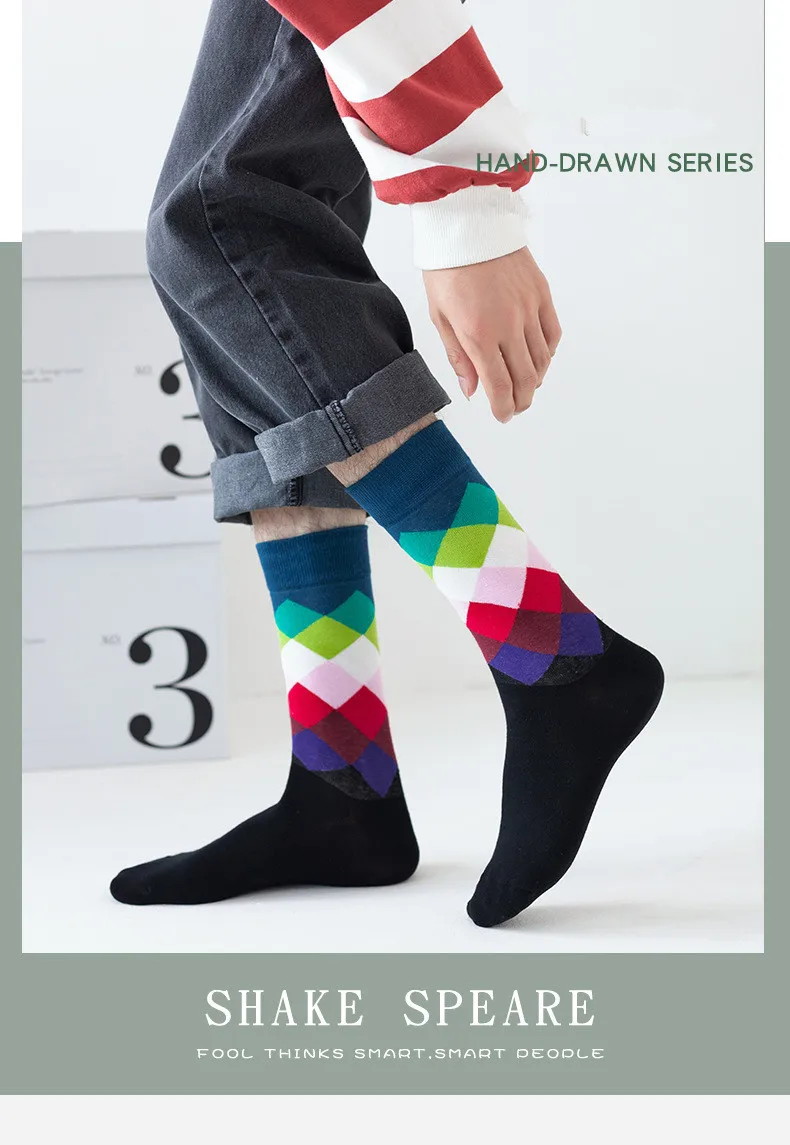 Модные мужские носки изысканный абзац Алмазный Узор Ромбики Смешные...