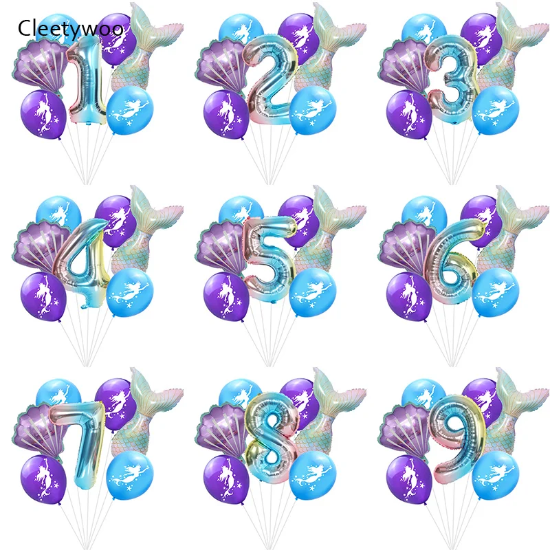 Cleetywoo воздушные шары на день рождения Русалка радужные цифры воздушные шары из фольги 1 2 3 4 5 6 7 8 9 лет декорации с днем рождения воздушные шары для детских праздников