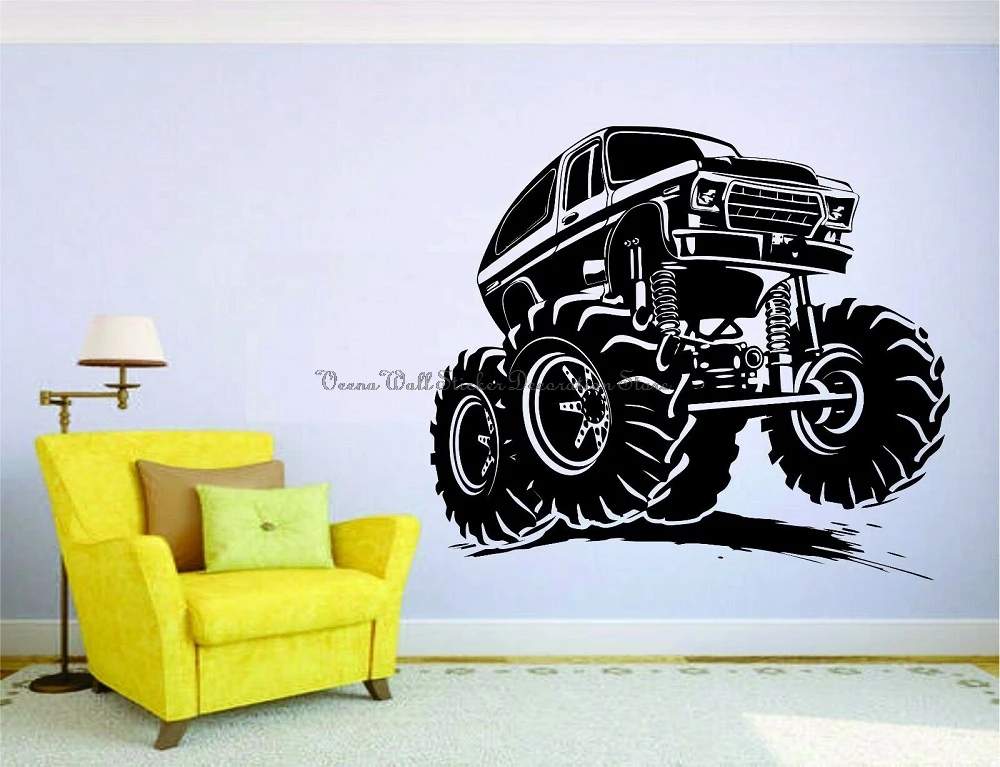 Монстр-Трак, гоночный автомобиль, наклейки на стену, конкурентоспособный ралли, для мальчиков, украшение для двери гаража, подарки для детей, виниловые наклейки MT18