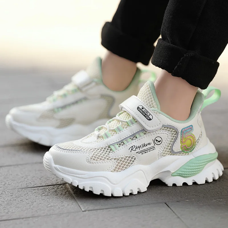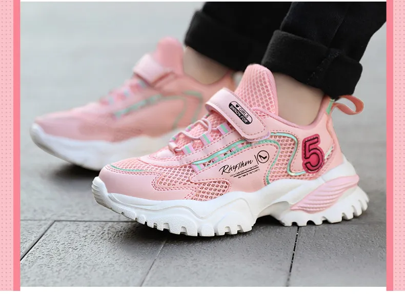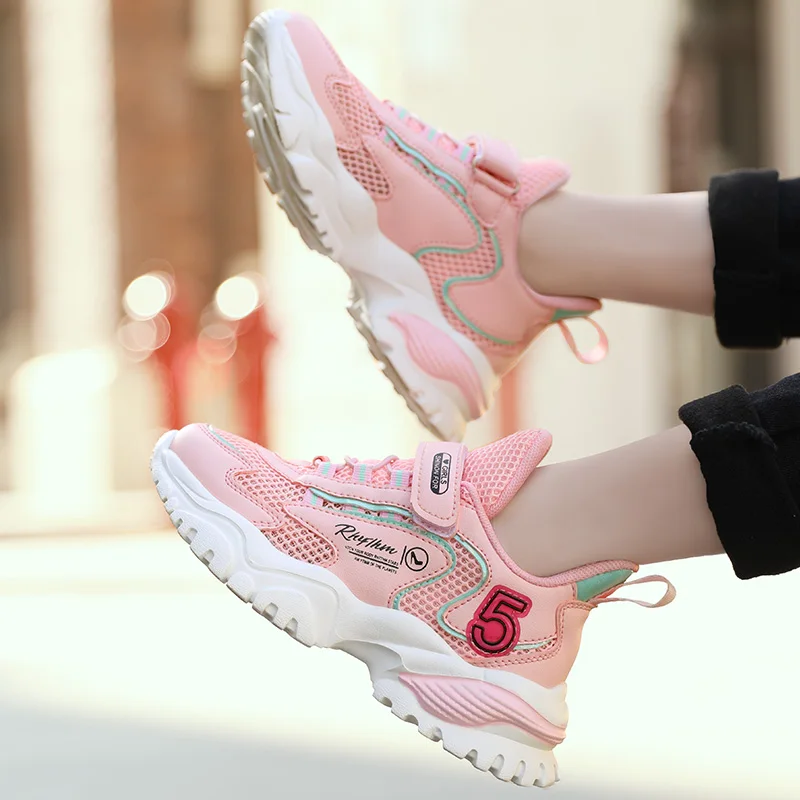 Детские кроссовки для девочек, дышащие сетчатые кроссовки для бега, модная повседневная спортивная обувь для девочек, весна 2021