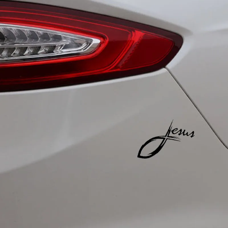 Крестообразный Крест Иисуса, Христианская Рыба-наклейка, классическое украшение тела, ПВХ, водонепроницаемая Солнцезащитная наклейка, может быть изменена по индивидуальному заказу