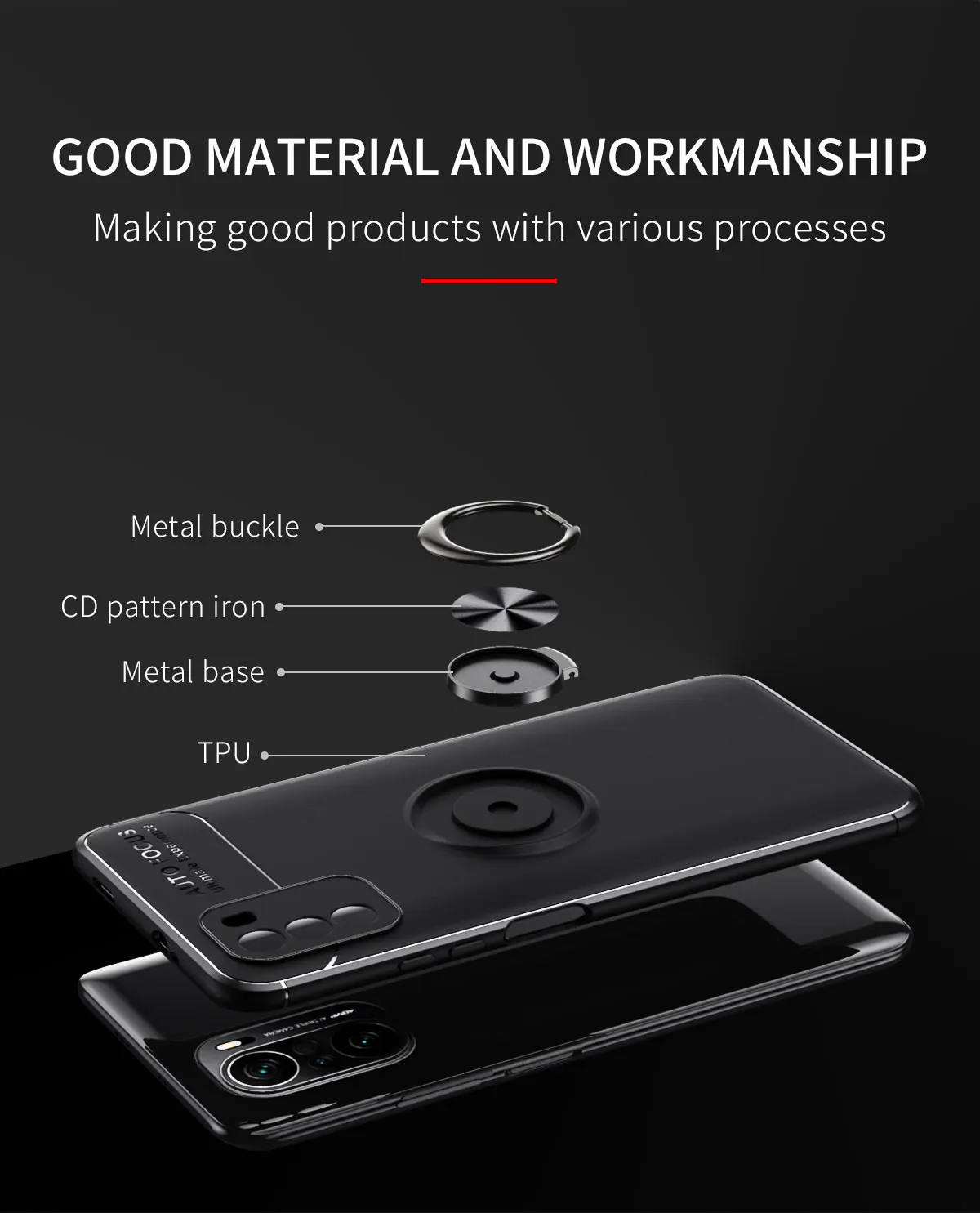 Чехол для Redmi K40 с металлическим кольцом-держателем, мягкий ударопрочный чехол из ТПУ для защиты объектива Xiaomi Redmi K40 Pro Plus POCO F3