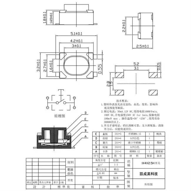 Такт SMD 3*4*2,5 мм, 50 шт.лот, 4-контактный сенсорный микропереключатель, кнопочные переключатели 3x4x2,5 H, белая кнопка дистанционного управления автомобилем