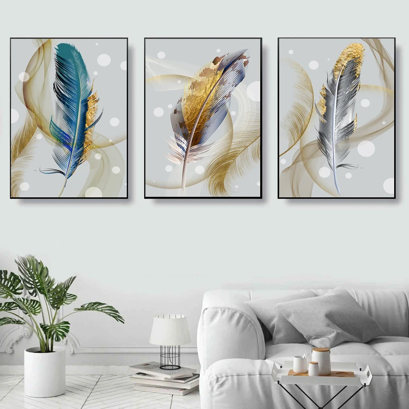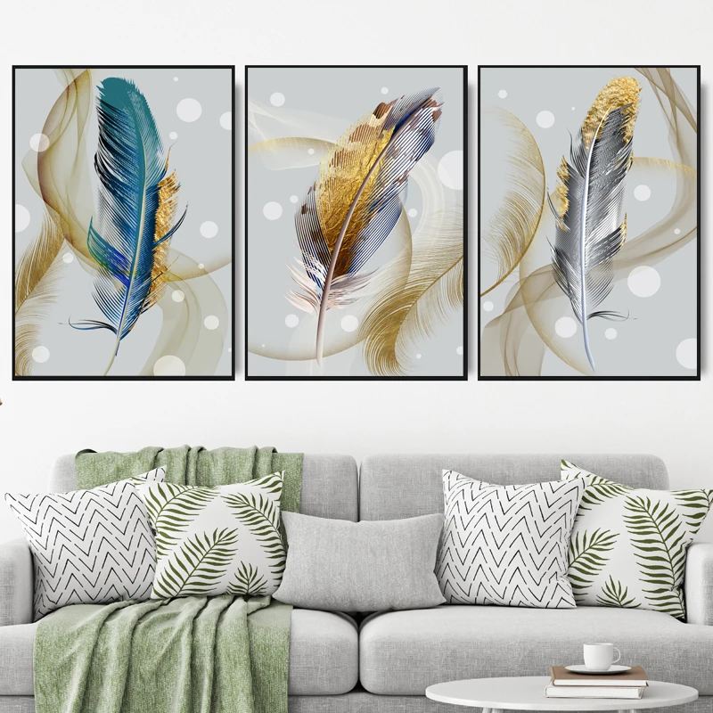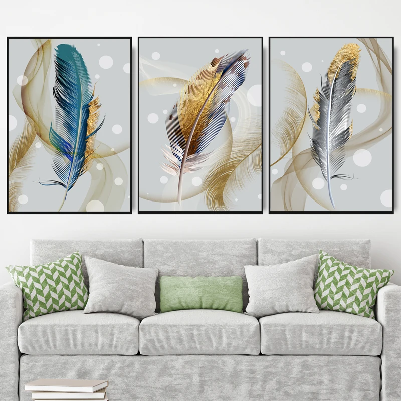 Золотые перья Холст Картина Настенный декор Плакаты и печатает фото...