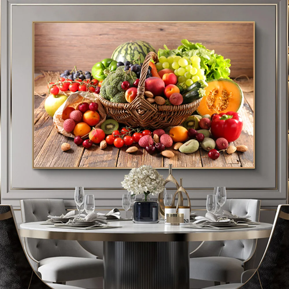 Картина на холсте овощи и фрукты в корзине, кухонный декор, плакат ...