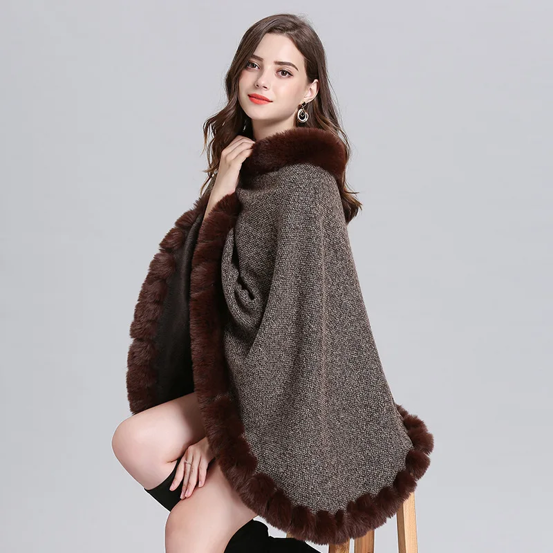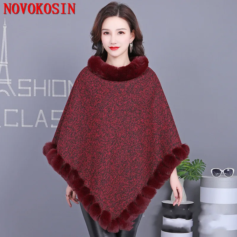 8 цветов 2021 Твердые Уличная пончо размера плюс, пуловер, пальто, Зимняя Теплая Бархатная круглым вырезом гирлянды из искусственного лисьего меха; Женские осенние накидки