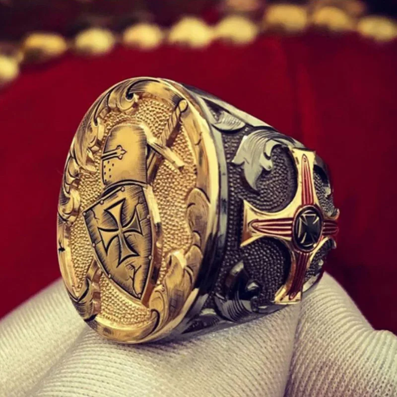 Мужское модное резное кольцо рыцарь крестомер Иисус Бог Крест эмали...