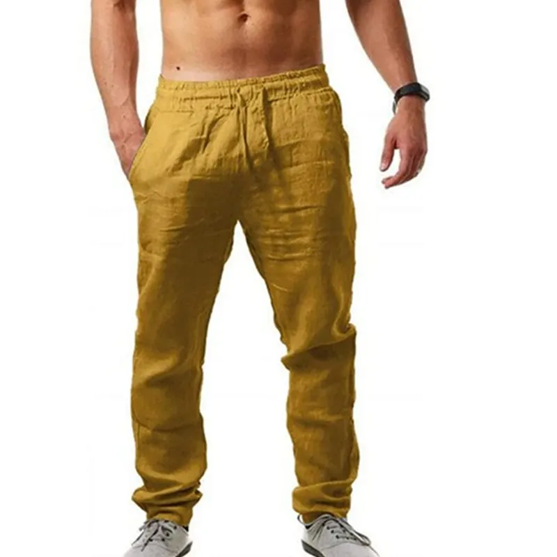 Брюки мужские из хлопка и льна, дышащие однотонные, для фитнеса, ул...