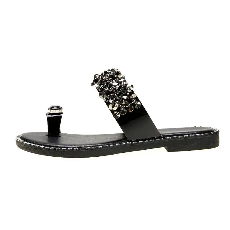 Сланцы женские с кристаллами, пляжные шлепанцы с ананасами, плоская подошва, обувь для улицы, лето