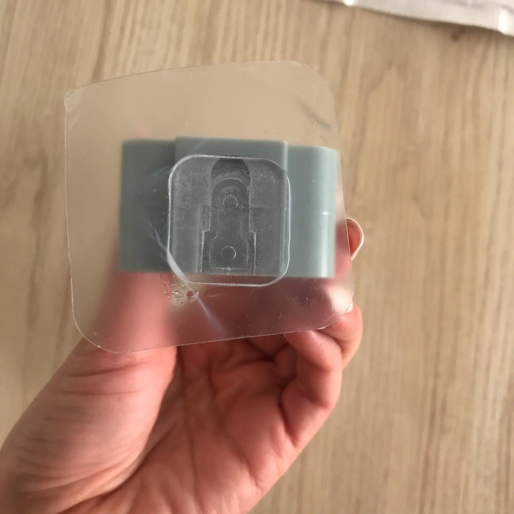 пришло быстро, застёжка держит неплохо, липкая основа крепкая, сам держатель легко закрепляется, но держится на липучке хорошо.