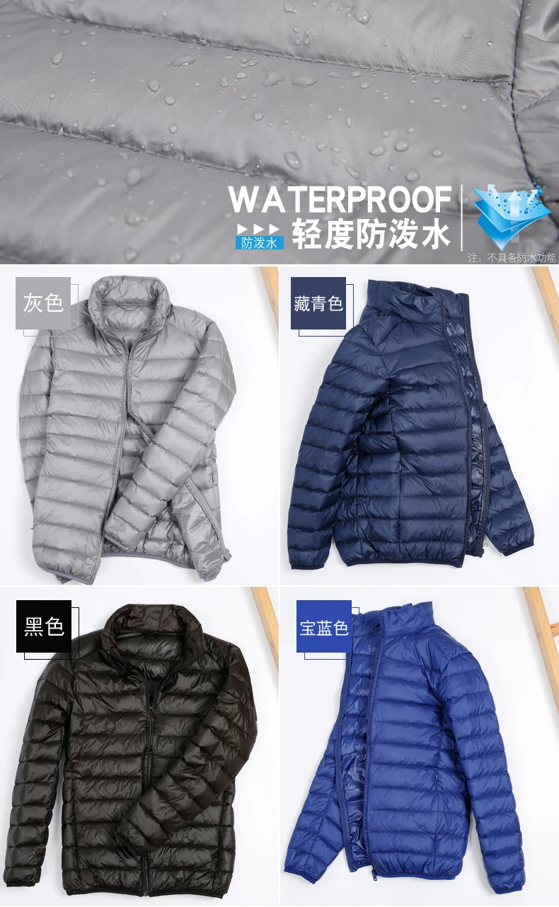 2021 Осенняя дутая куртка на гусином пуху пуховик ультра светильник для мужчин 90% пальто Водонепроницаемый пуховые парки Модные мужские воротник верхняя одежда пальто