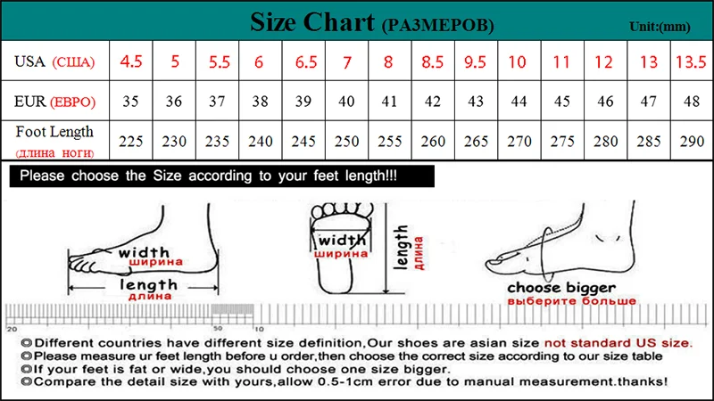 1.100% бренда 2. Допускается погрешность в 0-2 см из-за ручного измерения 3. Упаковка: новая обувь без коробки 4. Пожалуйста, выберите размер в соответствии с длиной стопы (Не выбирайте размер в соответствии с обычным размером Вашей страны!) 5. (Не фактический размер США) изменится только Размер Китая согласно нашим Правилам. Размер обуви соответствует размеру CN или длине стопы. 6. Американский Размер 10 (27 см). Эта длина 27 см не соответствует длине Стелька или длина подошвы, это просто относится к длине Стопы. 7. Из-за различных углов дисплея и съемки, это может быть Немного отличается от фактической разницы в цвете. 8, новая обувь немного пахнет и исчезнет через два Дней. 9. Тонкие линии и небольшие пятна не являются спорными. О дорогой клиент друг! Мы рекомендуем вам выбрать Размер в соответствии с размером таблицы.