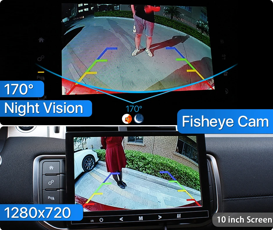 • Не нужны интерфейсы CANBUS или OBD, встроенный модуль треков заднего хода камеры, просто подключите питание.• Не поддерживает управление рулевым колесом.• Отрегулируйте трек автоматически в соответствии с движущимся положением и скоростью кузова и угла, что поможет вам облегчить парковку.• Широкоугольный объектив рыбий глаз на 170 °.