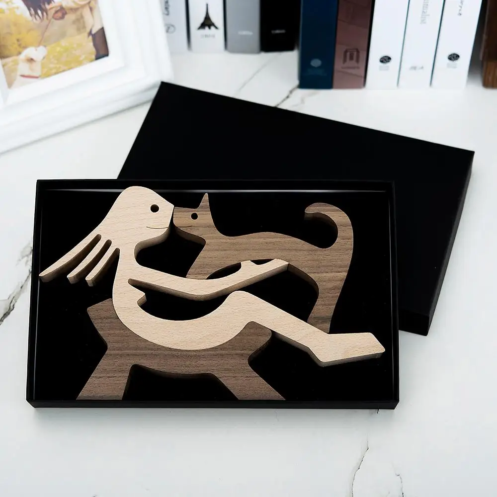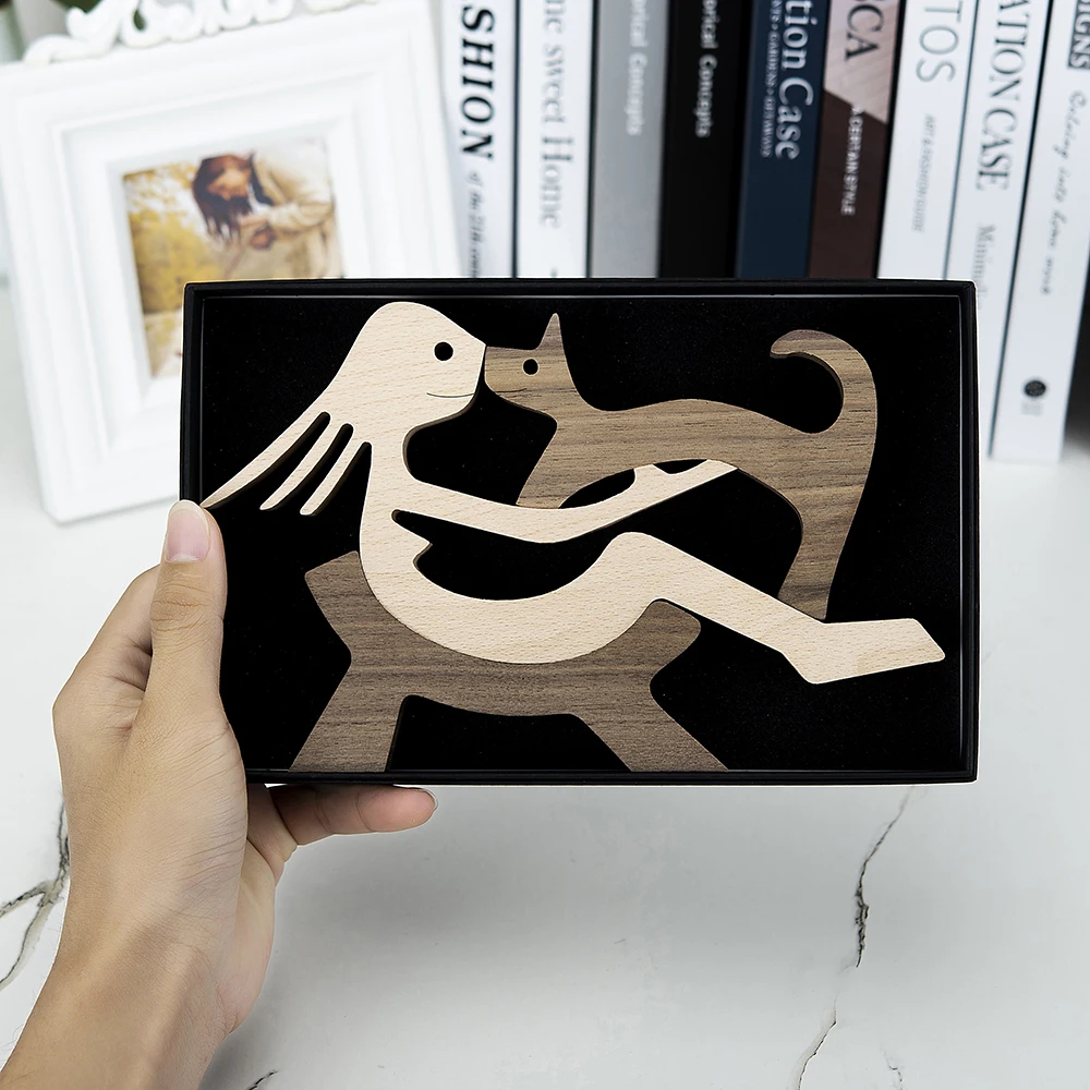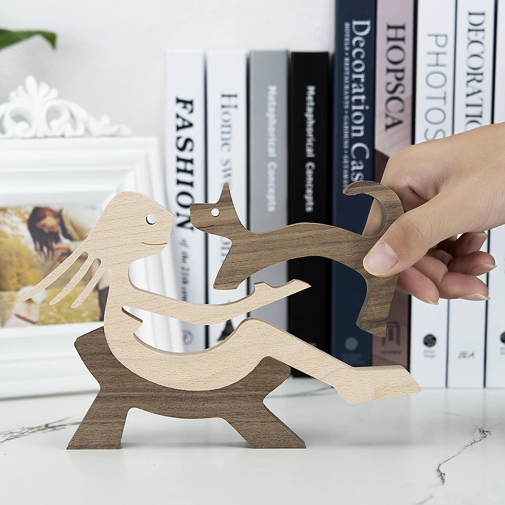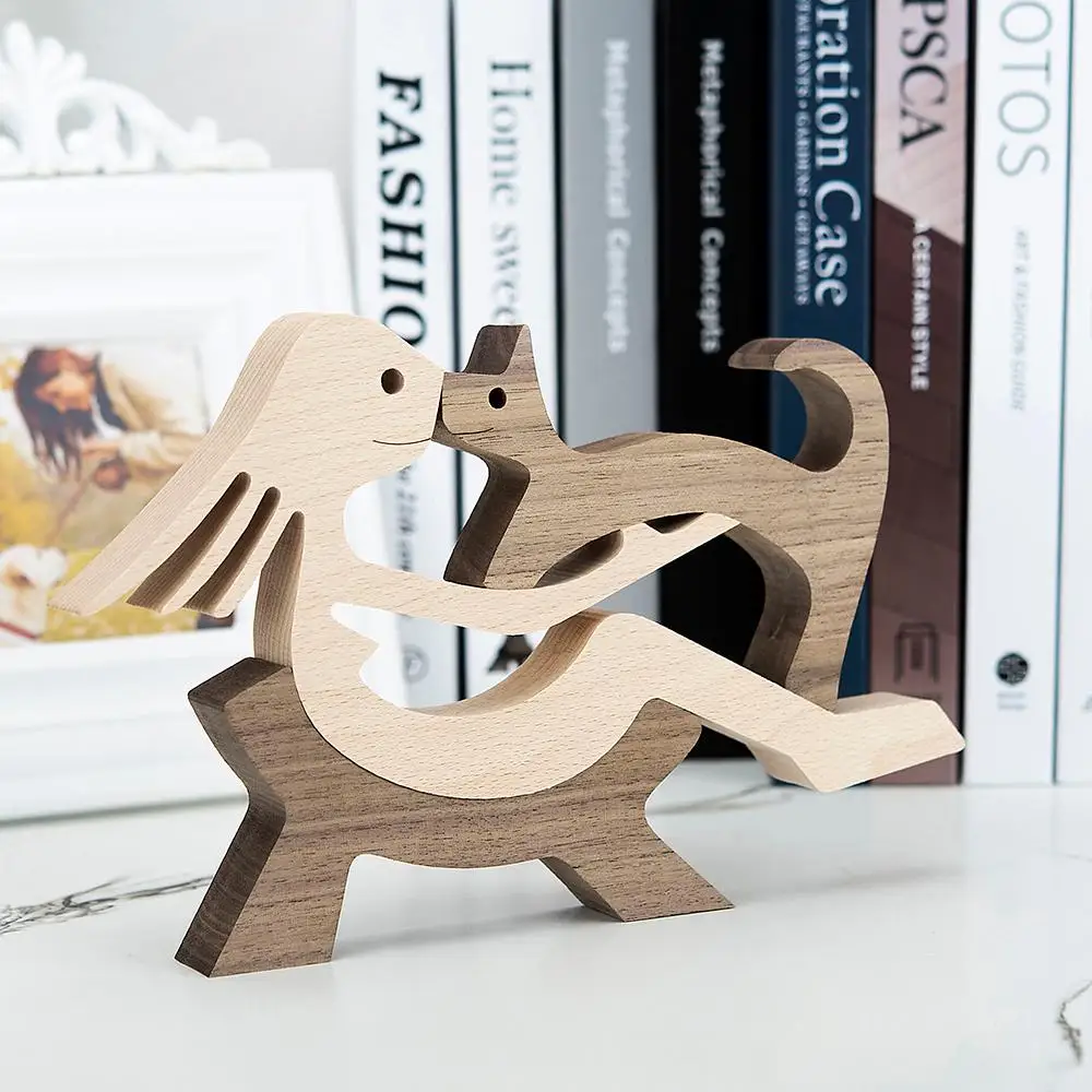 Щенок семейный домашний декор деревянная статуя ремесло по резьбе изготовленных на заказ человеческих и статуэтки собак украшения familia filhote de cachorro
