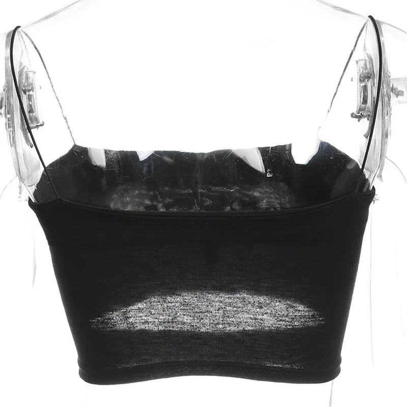 Новинка 2021, модная популярная Сексуальная женская летняя повседневная футболка без рукавов с вырезом, короткий топ, жилет, майка на бретелях, блузка