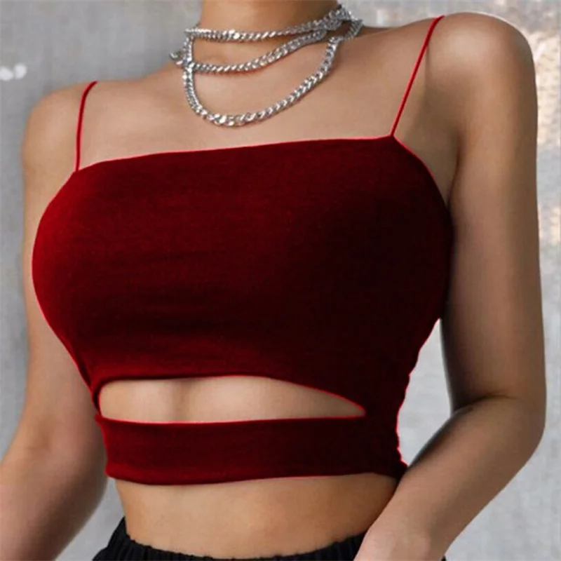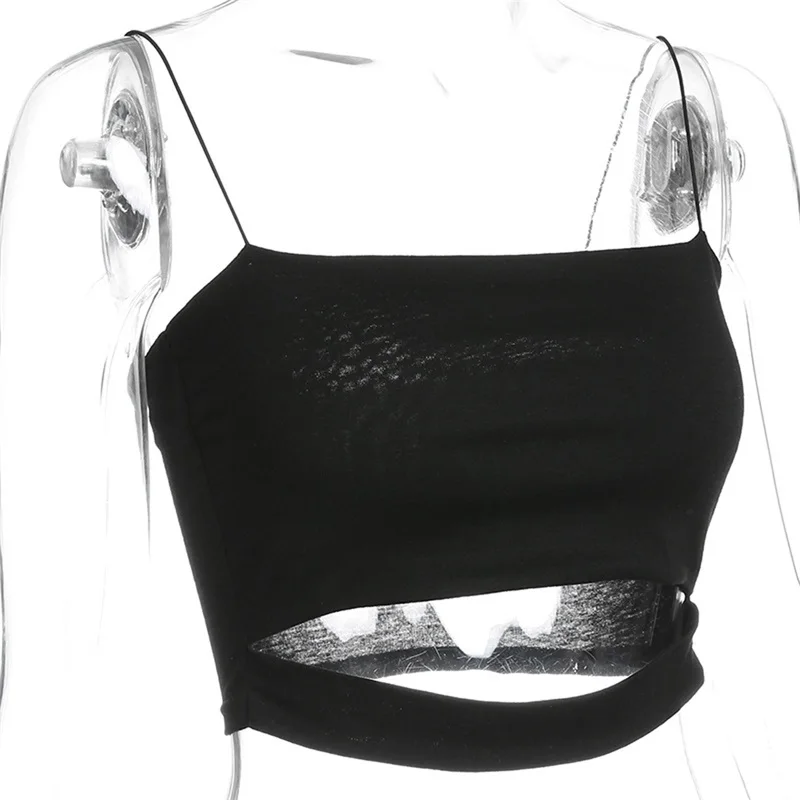 Новинка 2021, модная пикантная Женская Летняя Сексуальная Повседневная короткая футболка без рукавов с вырезами, укороченный топ, майка на бретелях, блузка