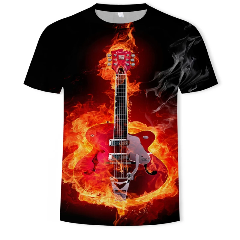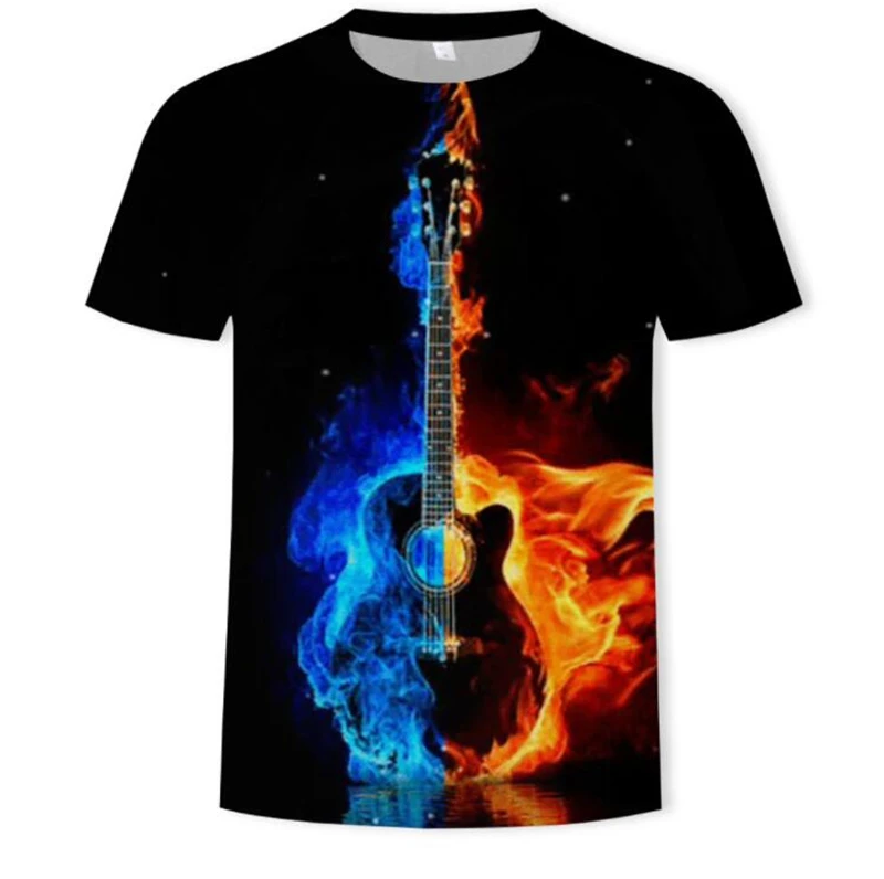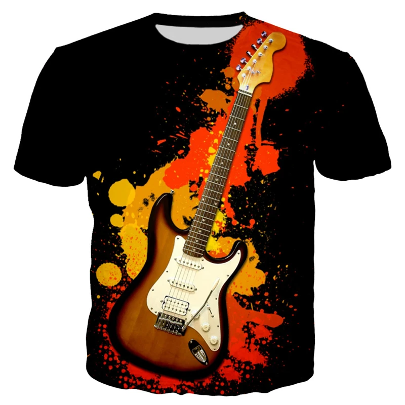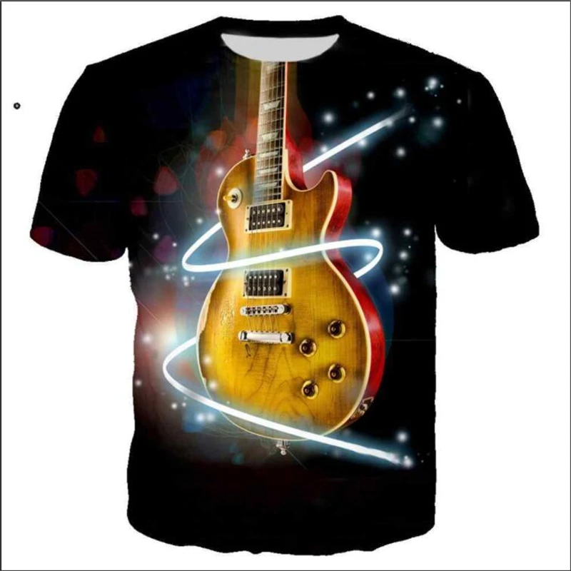 Новинка 2021, футболки с ремешком, Мужская модная футболка с 3d принтом гитары, футболка с коротким рукавом, футболка с коротким рукавом, музыкальная футболка, женская одежда