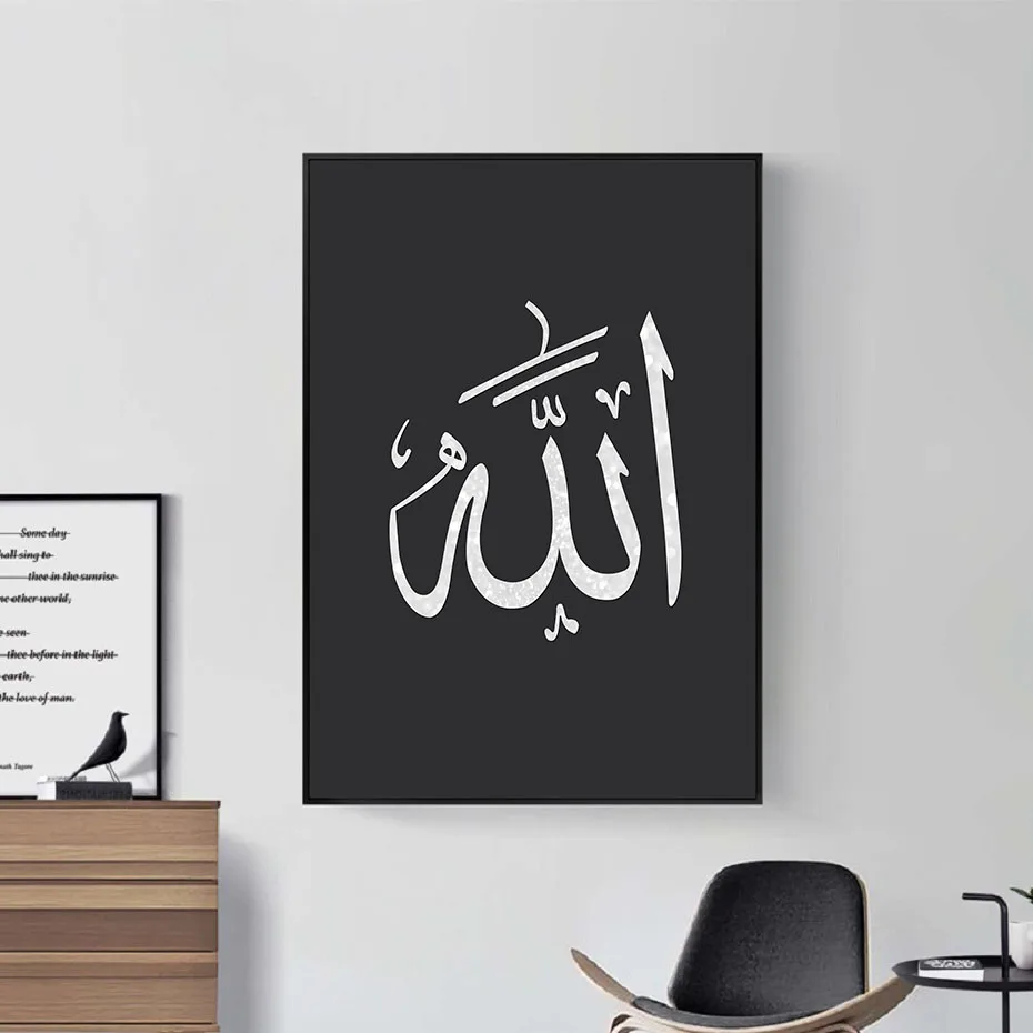 Серебряный Аллах исламские настенные картины на холсте настенные пе...
