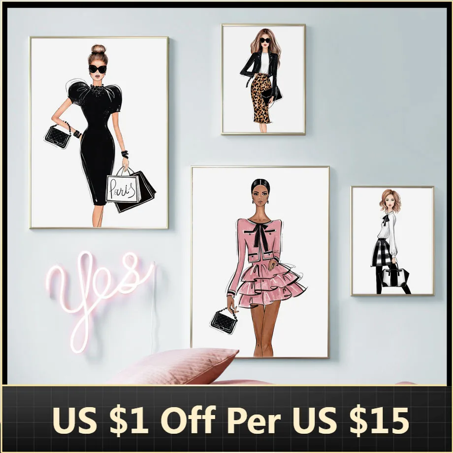 Декоративный Салон Парижа сексуальная девушка модное платье Холст Картина плакаты Настенный декор настенное Искусство Картина Декор для дома