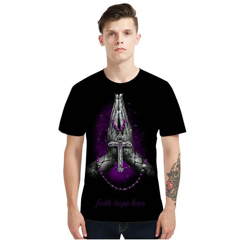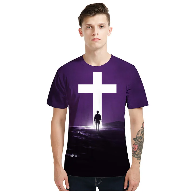 Футболка мужская с 3D-принтом Иисуса Креста, круглый вырез, короткий рукав, Повседневная модная рубашка в христианском стиле, лето, 2021