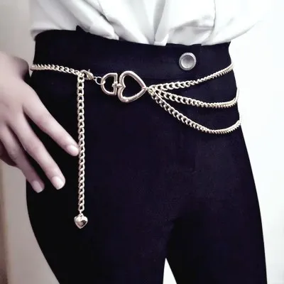 Ремень с цепочкой в форме сердца для мужчин и женщин, модный брелок с зажимом для брюк, джинсов, панк, рок, хип-хоп ювелирное изделие