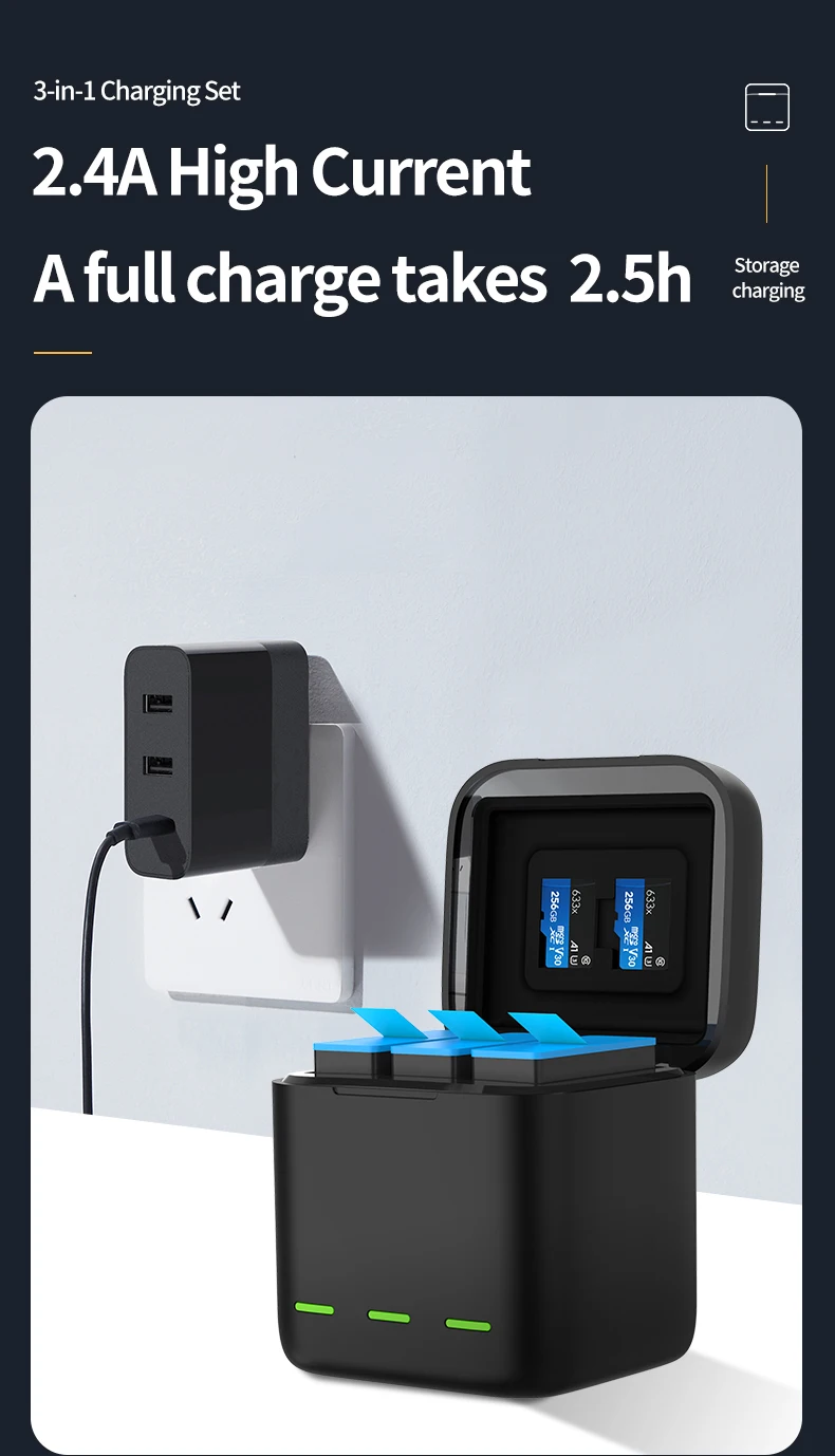Быстрое зарядное устройство для аккумуляторов GoPro 10 9, контейнер...