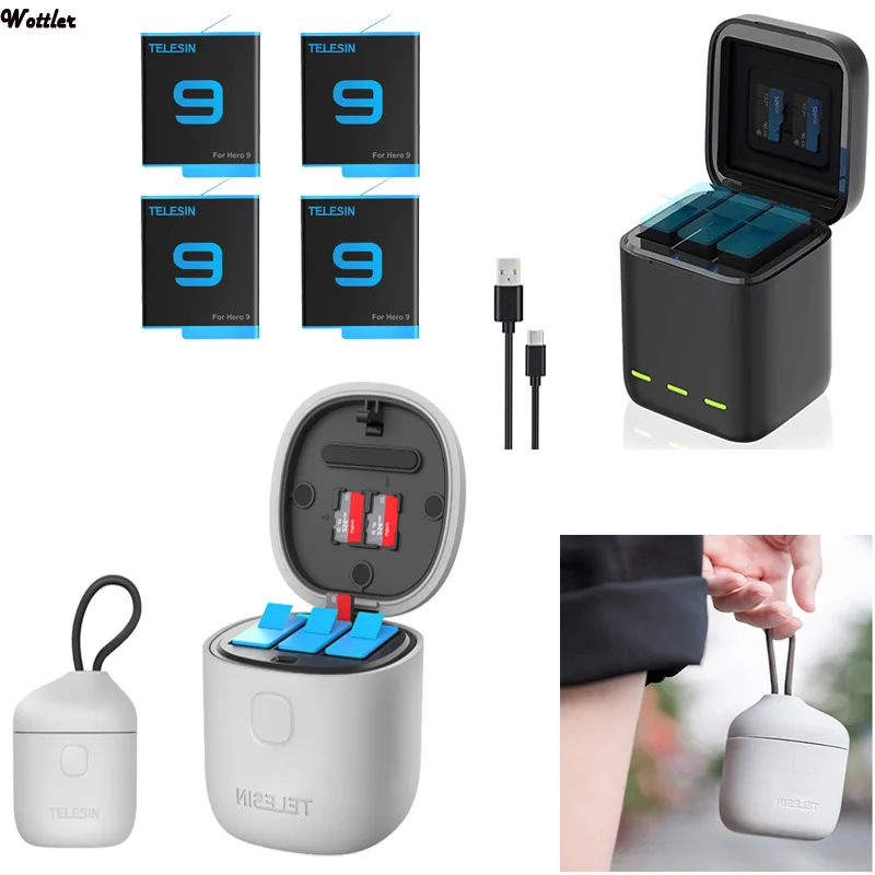 Быстрая зарядка для GoPro 9, 3 слота, аккумулятор для хранения, 1750 мАч, Liion, чехол для зарядки аккумулятора, аксессуары для GoPro Hero 9 камеры