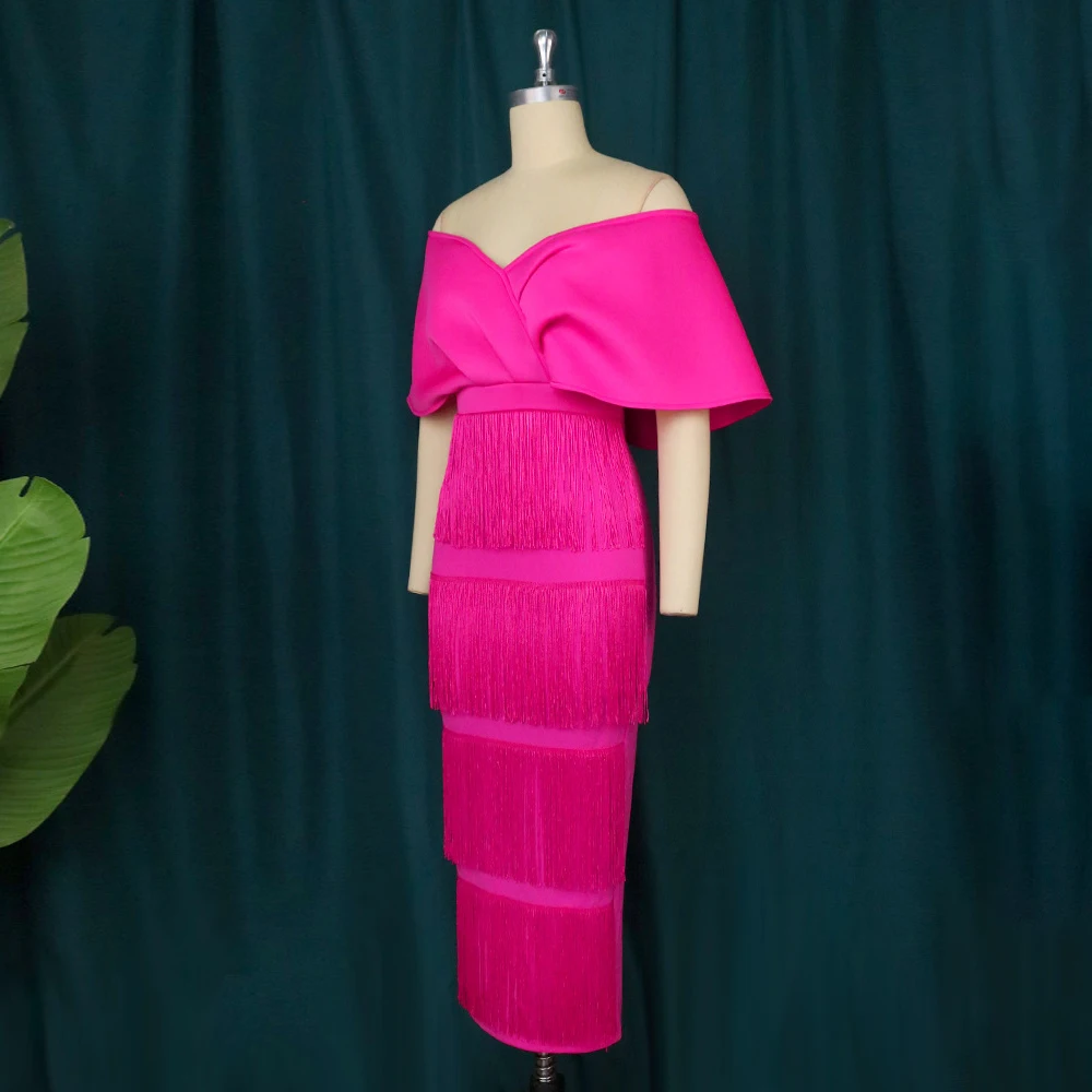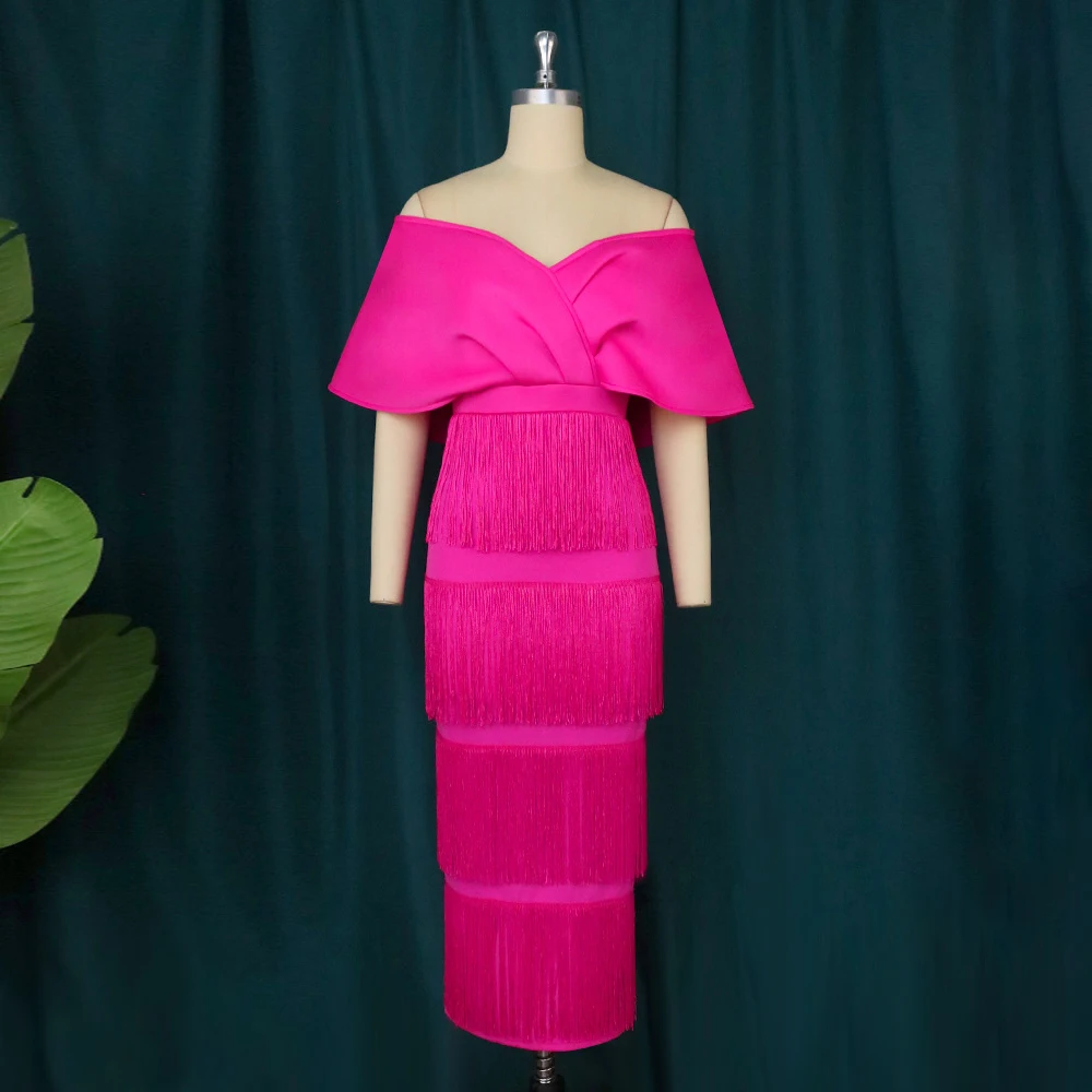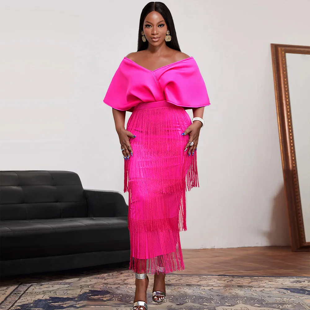Платье с бахромой, пикантное платье с открытыми плечами и V-образным вырезом, платье с бахромой из роз, вечернее праздничное платье для женщин 2023, элегантное Африканское платье-карандаш с открытой спиной