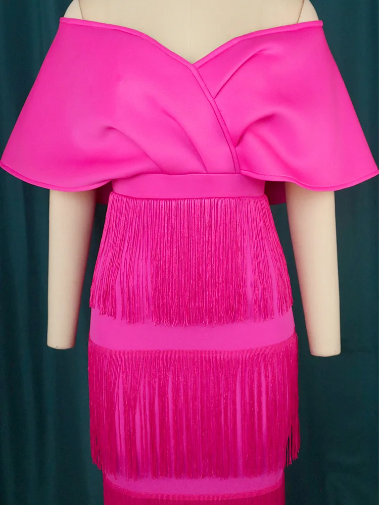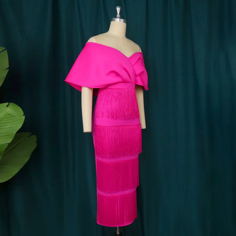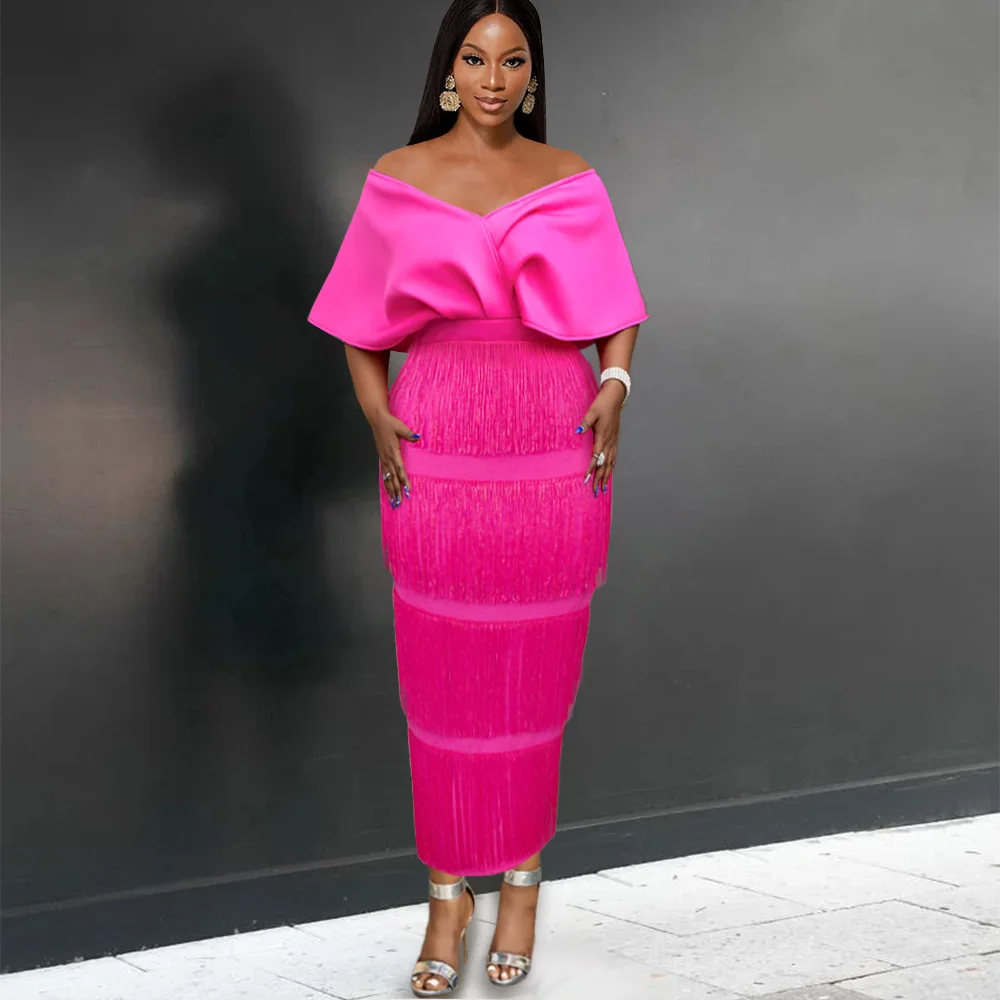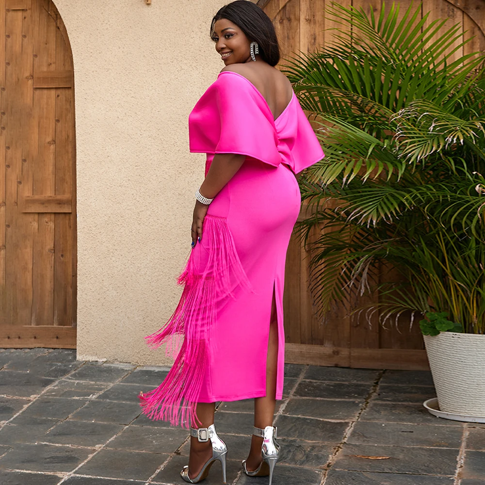 Платье с бахромой, пикантное платье с открытыми плечами и V-образным вырезом, платье с бахромой из роз, вечернее праздничное платье для женщин 2023, элегантное Африканское платье-карандаш с открытой спиной
