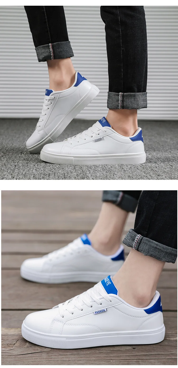 Новая модная белая кожаная обувь, Мужская теннисная обувь с вулкани...